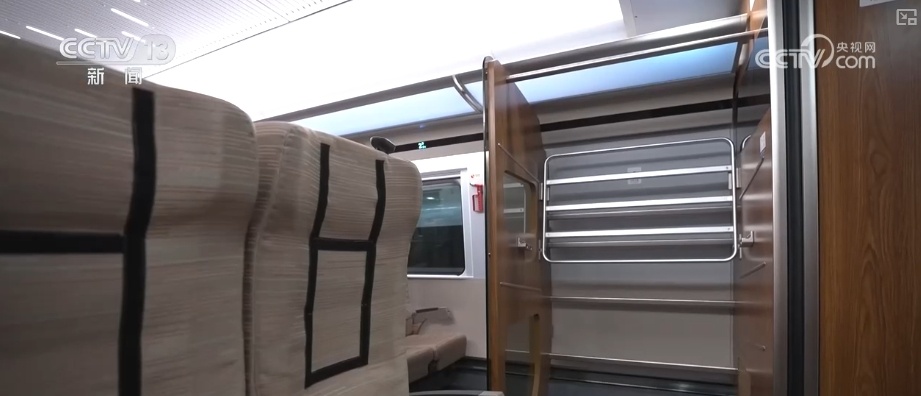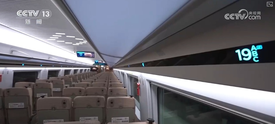 首先,它的座椅從過去的18排增加到了19排,載客能力大大提升。其次,每一節(jié)車廂都增加了一個大的行李架,旅客存放行李的空間也相應增加。在車身長度保持不變的前提下,多出來的空間從哪里來?電氣柜和過去相比瘦身了不少,還有一些基礎設施改到了車下,這樣車廂的使用空間大大增加了。