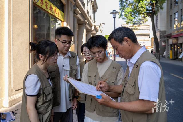 這支特別的文物普查隊(duì)由三代文保工作者組成,年齡最大相差接近40歲,由參加過(guò)“三普”的區(qū)文化館老館長(zhǎng)林永利帶隊(duì),區(qū)文廣旅體局副局長(zhǎng)張耀輝領(lǐng)著幾名區(qū)博物館的“90后”,深入小公園走街串巷,不錯(cuò)過(guò)任何文物的蛛絲馬跡。