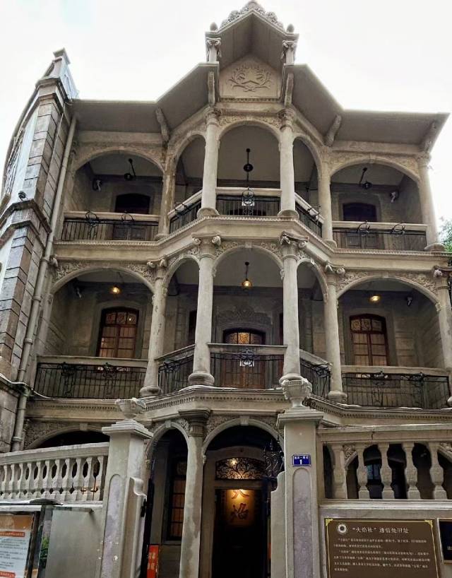 沿街看平平無(wú)奇,轉(zhuǎn)入內(nèi)街,只見(jiàn)一段石墻,將一棟三層仿巴洛克式建筑半圍起來(lái),里邊的小洋樓十分別致,灰白羅馬石柱、別致的拱型門(mén)廊、精美絕倫的浮雕……透著不同尋常的訊息。