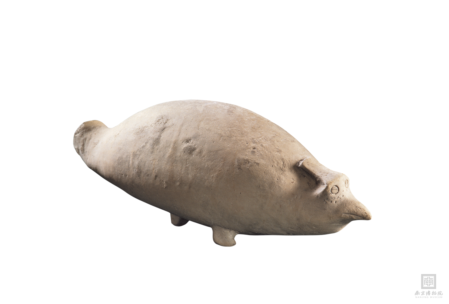 王奇志介紹,在對這件新石器時代藝術品的研究中,學者發(fā)現(xiàn),它雖然有尖喙、頭頂有冠,有一點鳥類特征,但整體與豚更相似。南博的學者為此請教了南京大學生物系的教授,他們也認為更像是“豚”。在新石器時代,先民們按照自己熟悉的動物,捏塑動物形陶器的情況并不罕見,比如良渚文化的鱉形壺、螺螄形壺,大汶口文化的豬形陶鬻等。