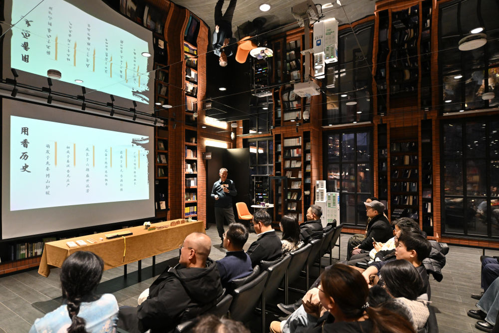 ↑在天津意式風情區(qū)鐘書閣書店,讀者參加一場傳統(tǒng)文化夜讀體驗活動(12月19日攝)。