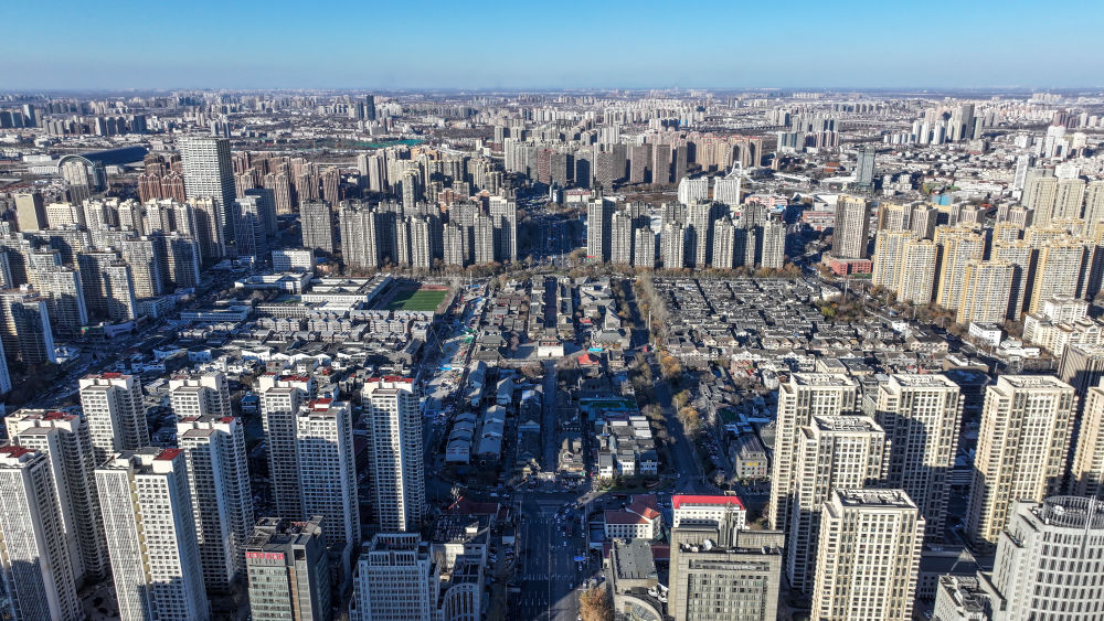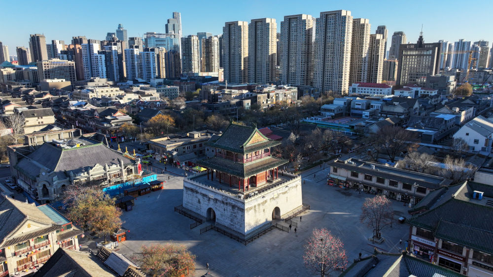 ↑這是12月17日拍攝的天津鼓樓及老城廂地區(qū)(無人機照片)。