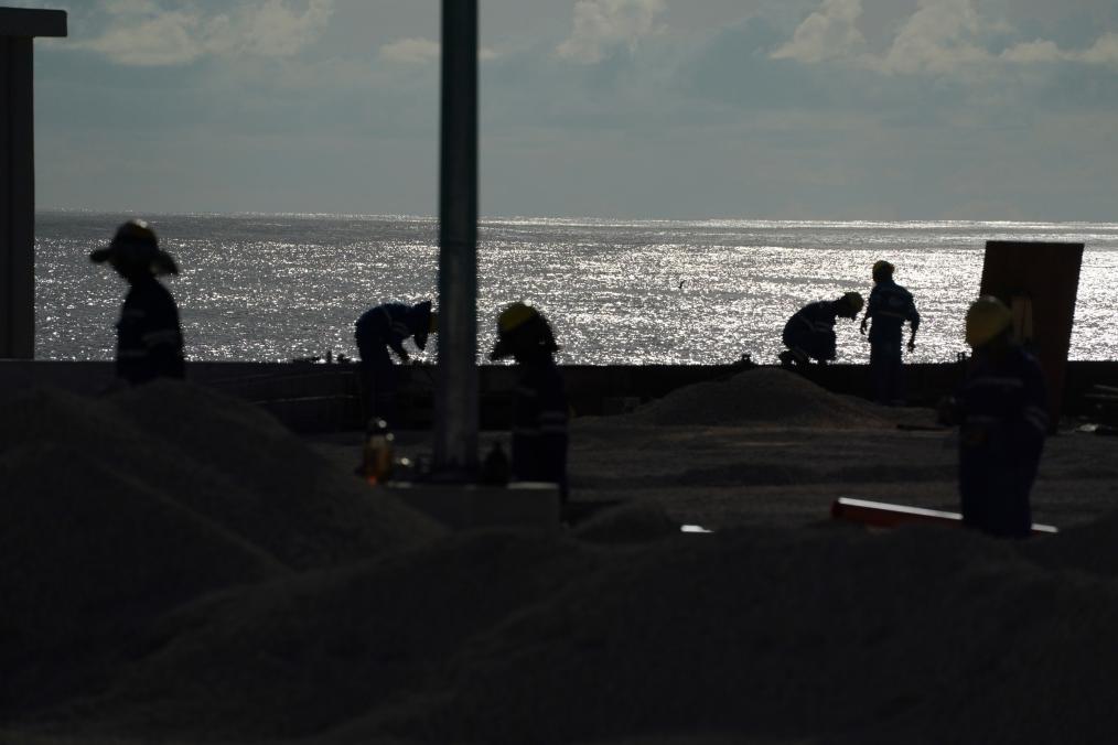 2024年1月18日,工作人員在瑙魯艾沃港碼頭升級改造項目工地工作。新華社記者 王申 攝