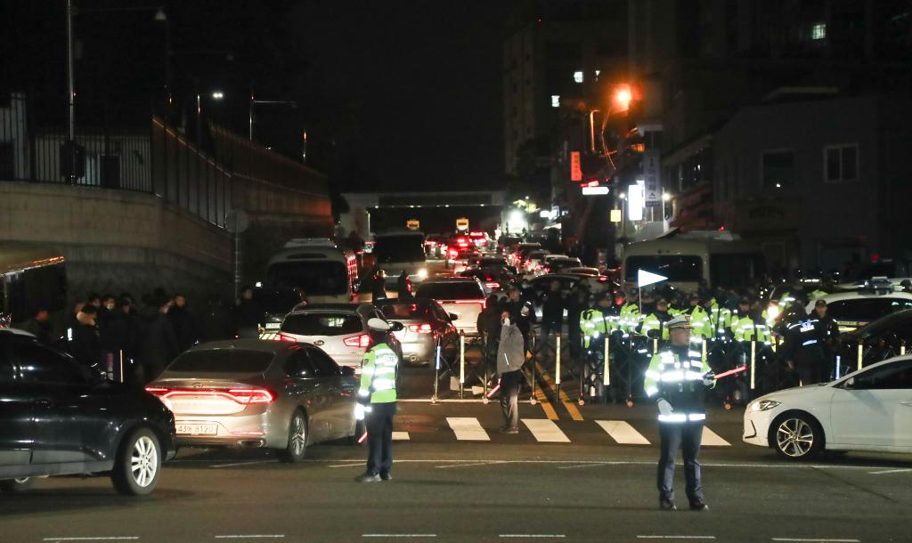 2024年12月4日凌晨,警察在韓國首爾的韓國總統(tǒng)府外戒備。新華社記者 姚琪琳 攝