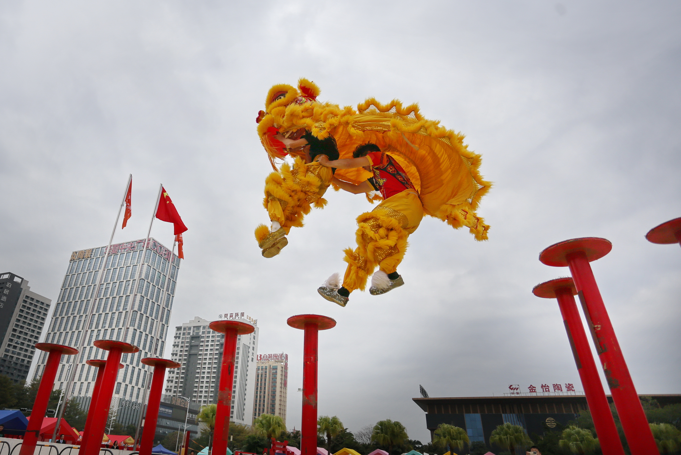 1月22日,南莊洪拳獅隊(duì)在廣東省佛山市禪城區(qū)南莊鎮(zhèn)進(jìn)行舞獅表演。