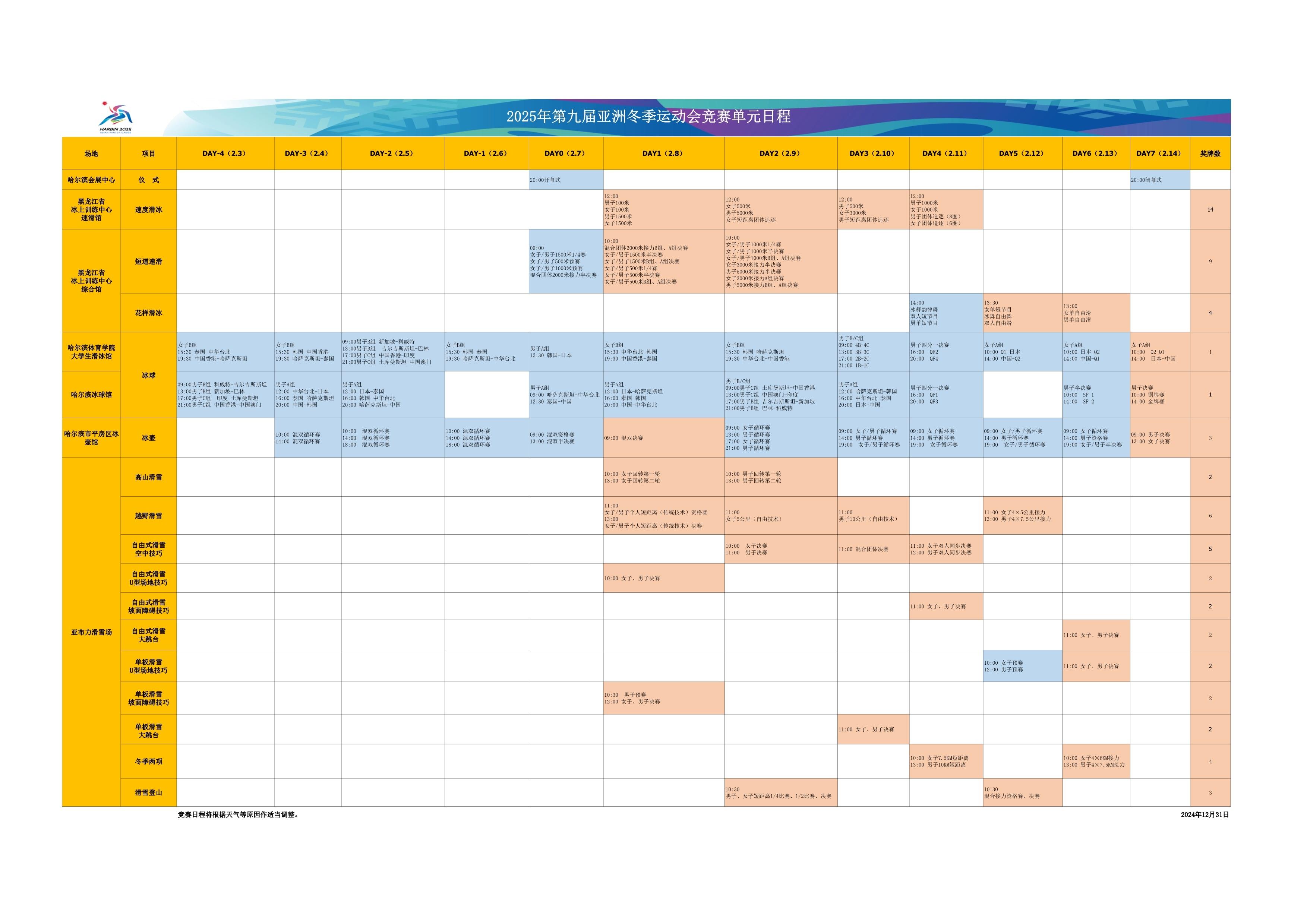 △第九屆亞冬會競賽單元日程