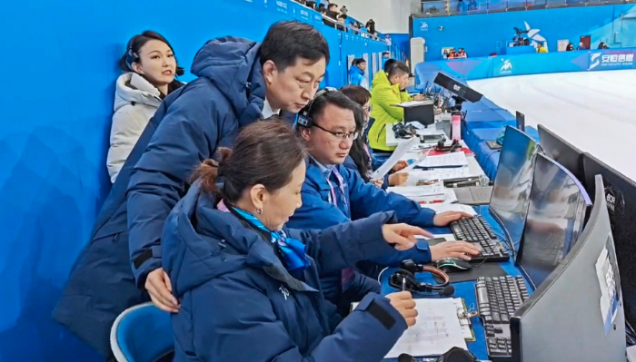 “由于短道速滑項目參賽人員多,競爭特別激烈,運動員之間的身體接觸在所難免,裁判長會認為他有犯規(guī)的動作,這兩個設備在比賽過程中提供的信息非常重要。尤其錄像回放設備,不僅可以為裁判長提供視頻回放,同時也兼顧了體育展示向大屏幕投送,還有電視臺進行判罰視頻的回放,這在無形中保證了比賽的公平公正?!?/p>