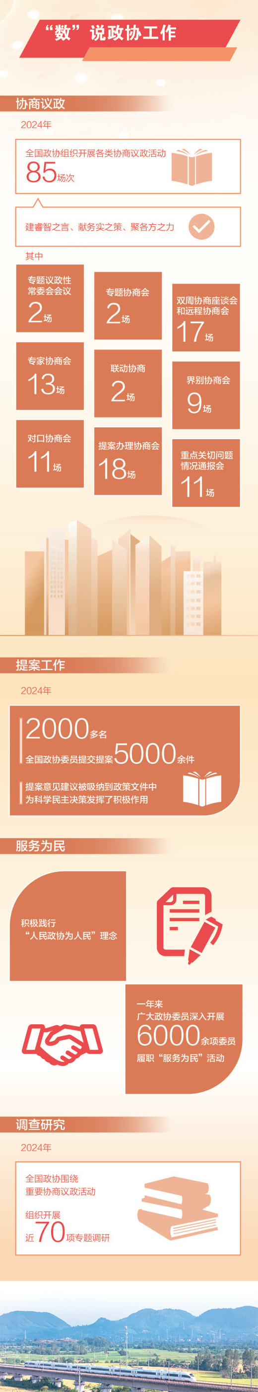 人工智能、綠色低碳、新質(zhì)生產(chǎn)力、文化遺產(chǎn)保護(hù)、人口高質(zhì)量發(fā)展、金融高質(zhì)量發(fā)展……協(xié)商議題緊扣“國之大者”和民之關(guān)切;專題議政性常委會會議、專題協(xié)商會、雙周協(xié)商座談會、遠(yuǎn)程協(xié)商會、專家協(xié)商會、界別協(xié)商會、提案辦理協(xié)商會……協(xié)商形式豐富多樣,過去一年,全國政協(xié)組織開展各類協(xié)商議政活動85場次。一年來,全國政協(xié)把協(xié)商議政工作放到黨和國家工作大局中精準(zhǔn)定位、科學(xué)謀劃,聚焦推進(jìn)中國式現(xiàn)代化,建睿智之言、獻(xiàn)務(wù)實之策、聚各方之力,協(xié)商議政質(zhì)量和成效不斷提升。