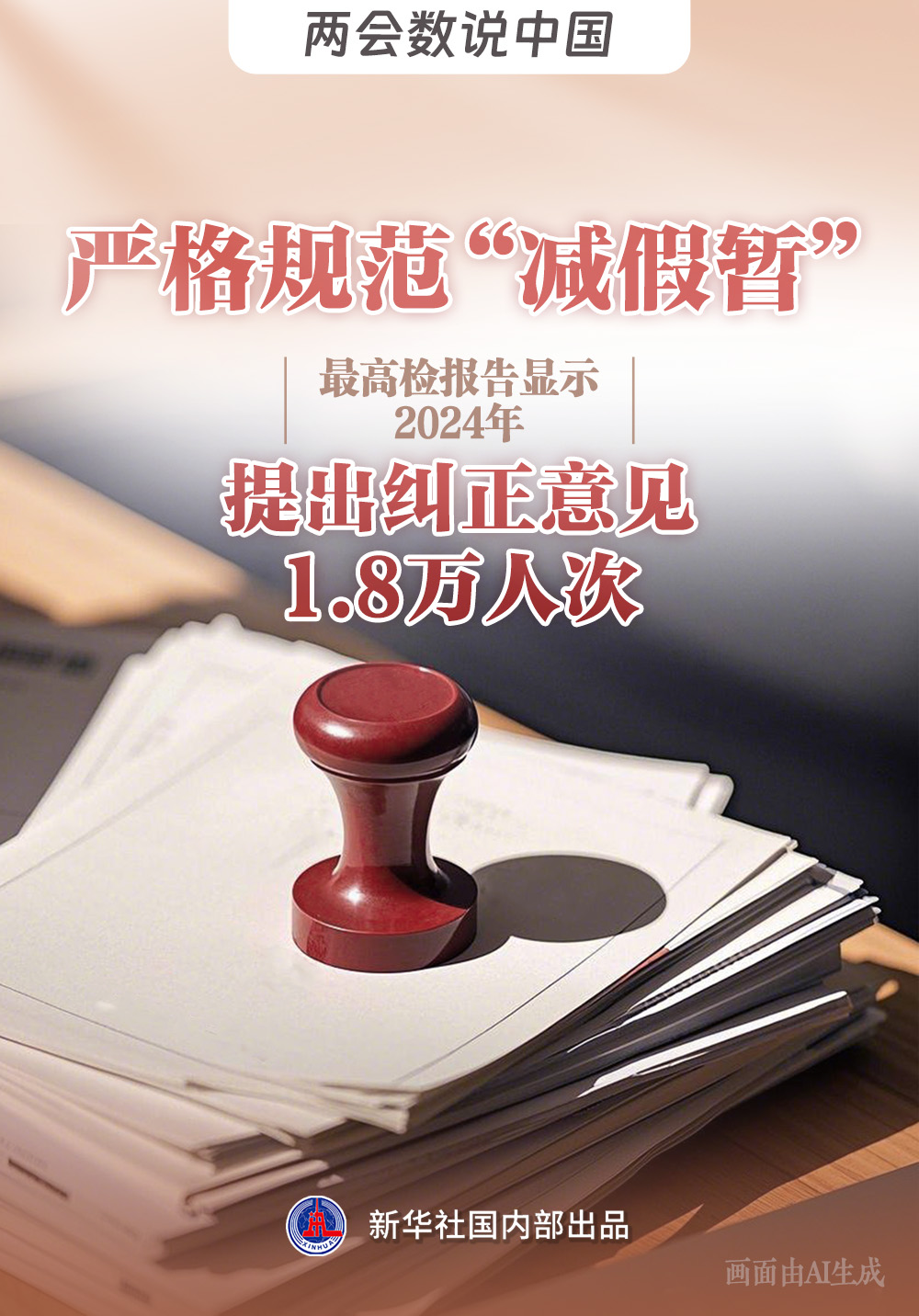 最高檢報告顯示,加強減刑、假釋、暫予監(jiān)外執(zhí)行監(jiān)督,對提請、決定或裁定不當?shù)?,提出糾正意見1.8萬人次。
