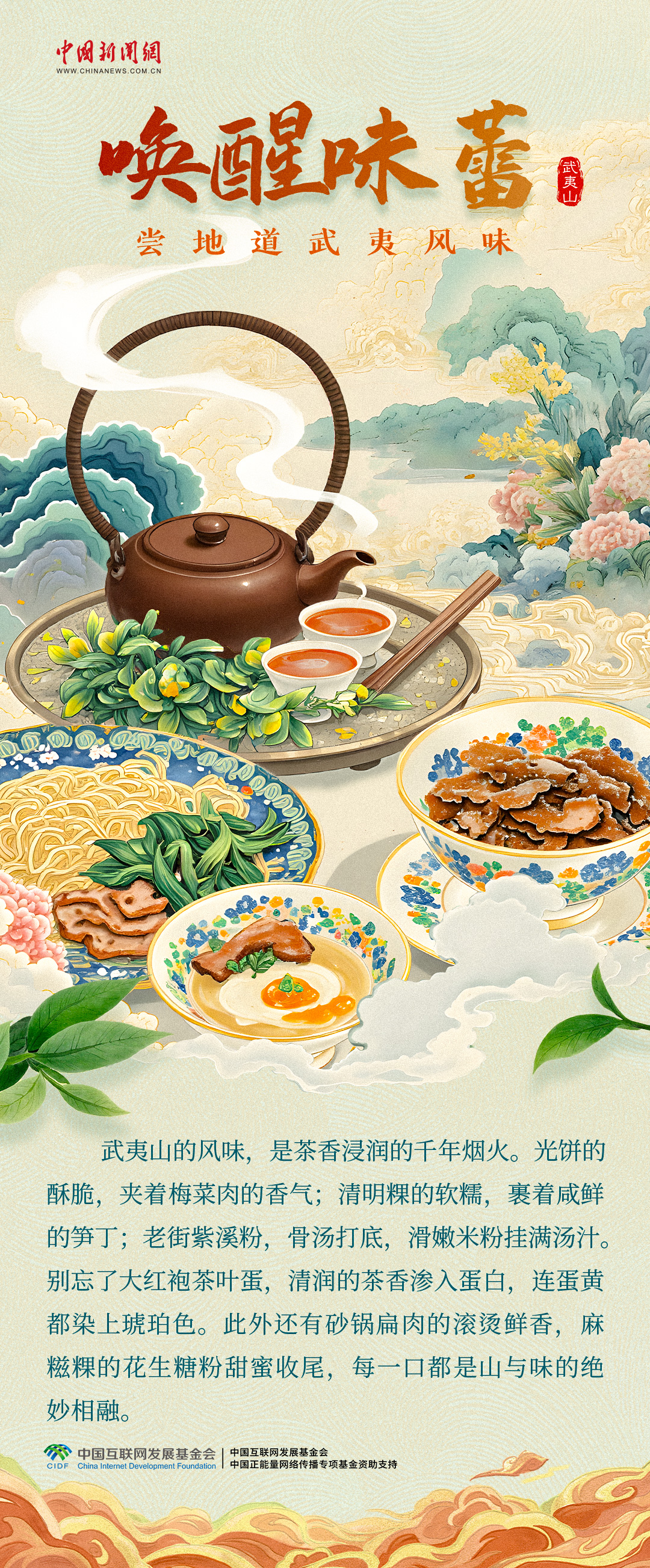 來(lái)武夷山,漫步在國(guó)家森林公園的蒼翠秘境,晨霧中傳來(lái)竹筏劃破九曲溪的潺潺水聲;探訪大安村,紅軍禮堂的斑駁磚墻,銘刻著紅色記憶;街頭轉(zhuǎn)角,咬一口酥脆金黃的光餅,梅菜肉香撲鼻……跟隨畫(huà)筆,尋山水人文,品最地道的武夷味道→