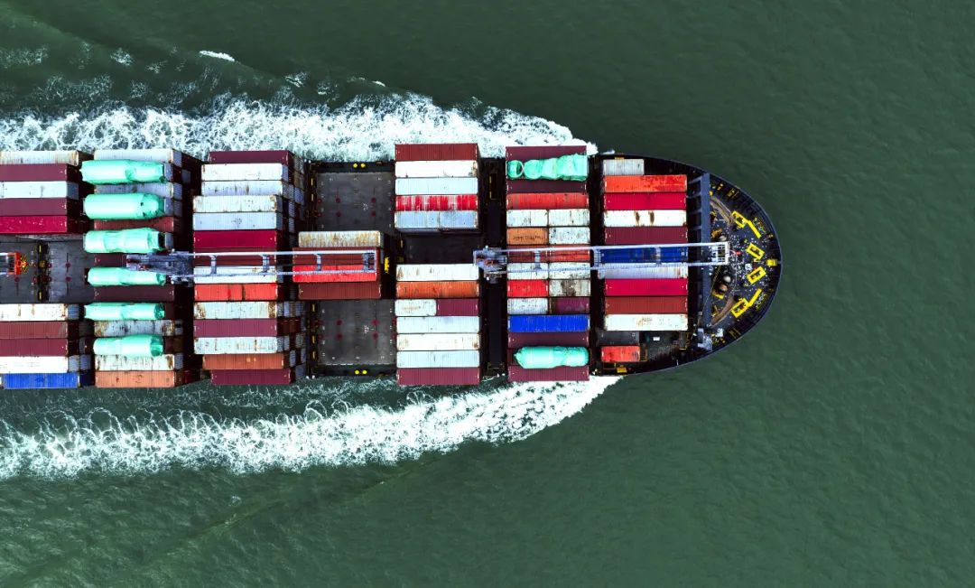 一艘大型集裝箱貨輪行駛在廈門市演武大橋附近海面。新華社記者 魏培全 攝