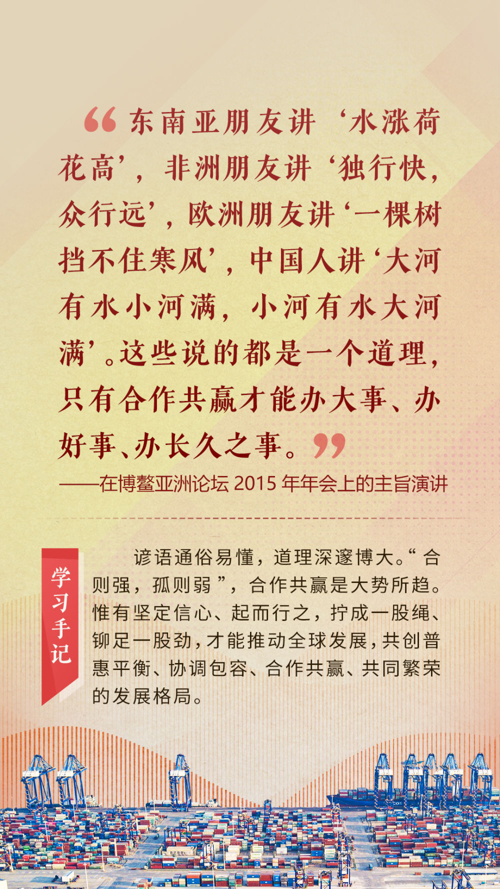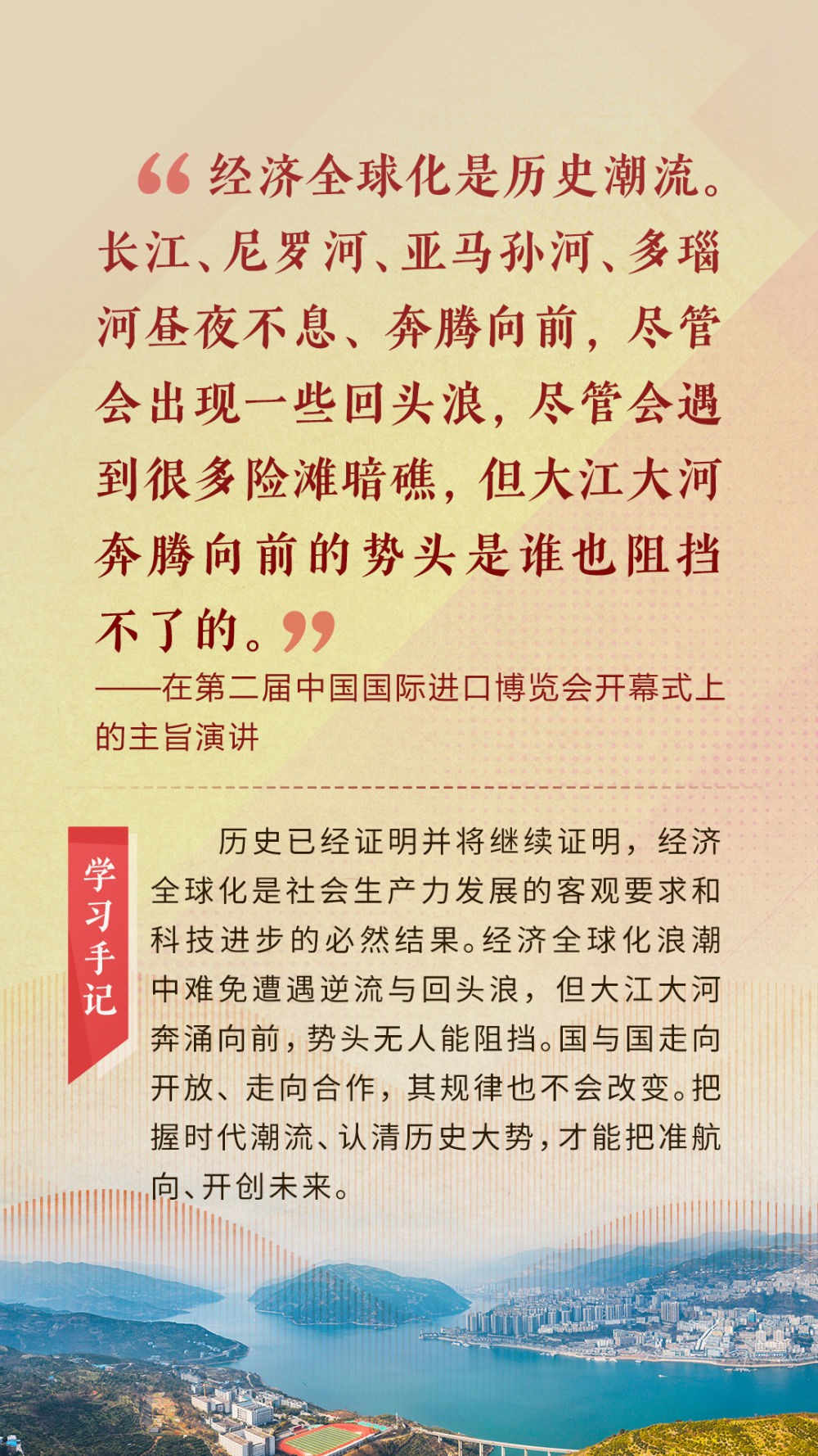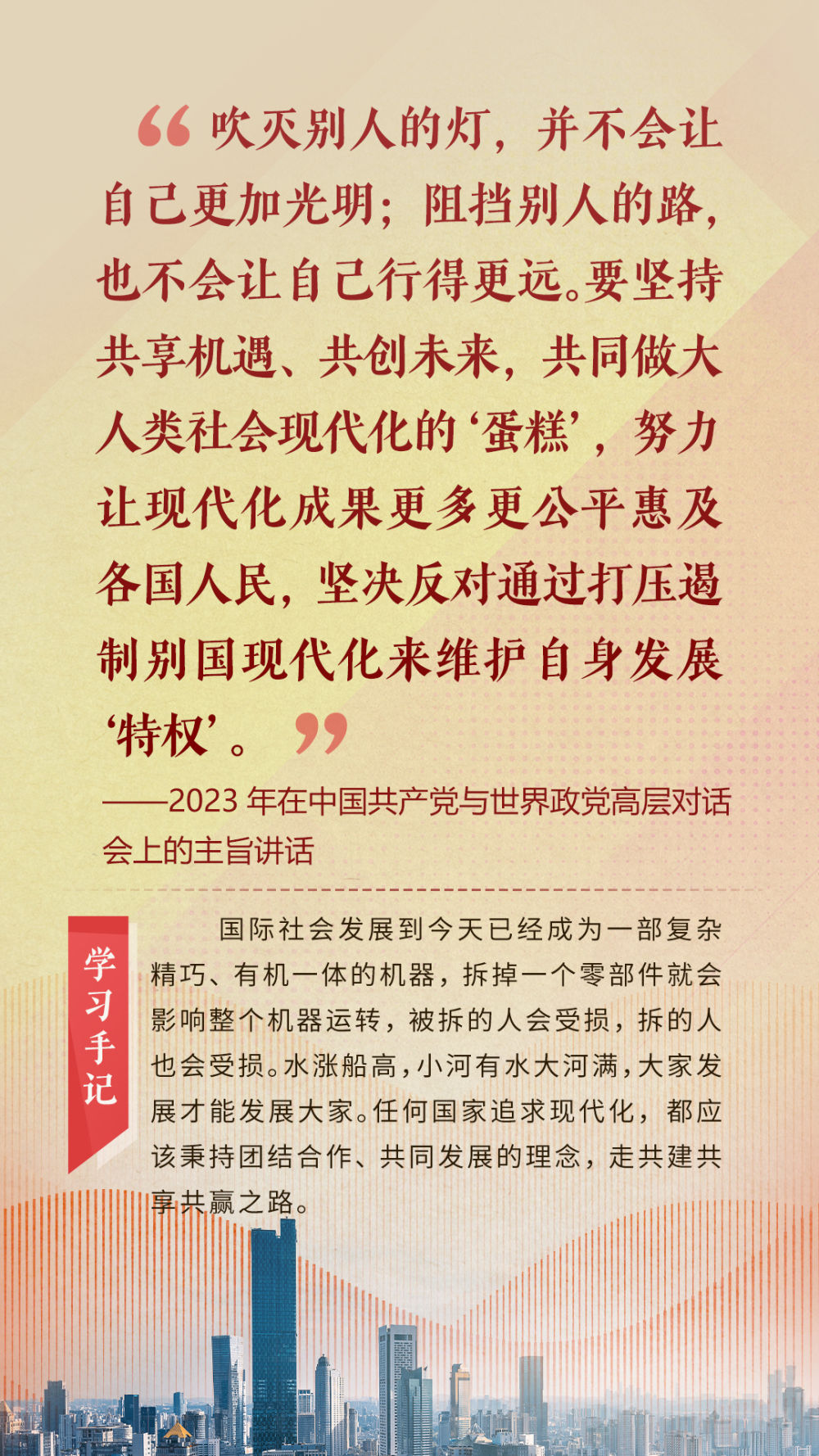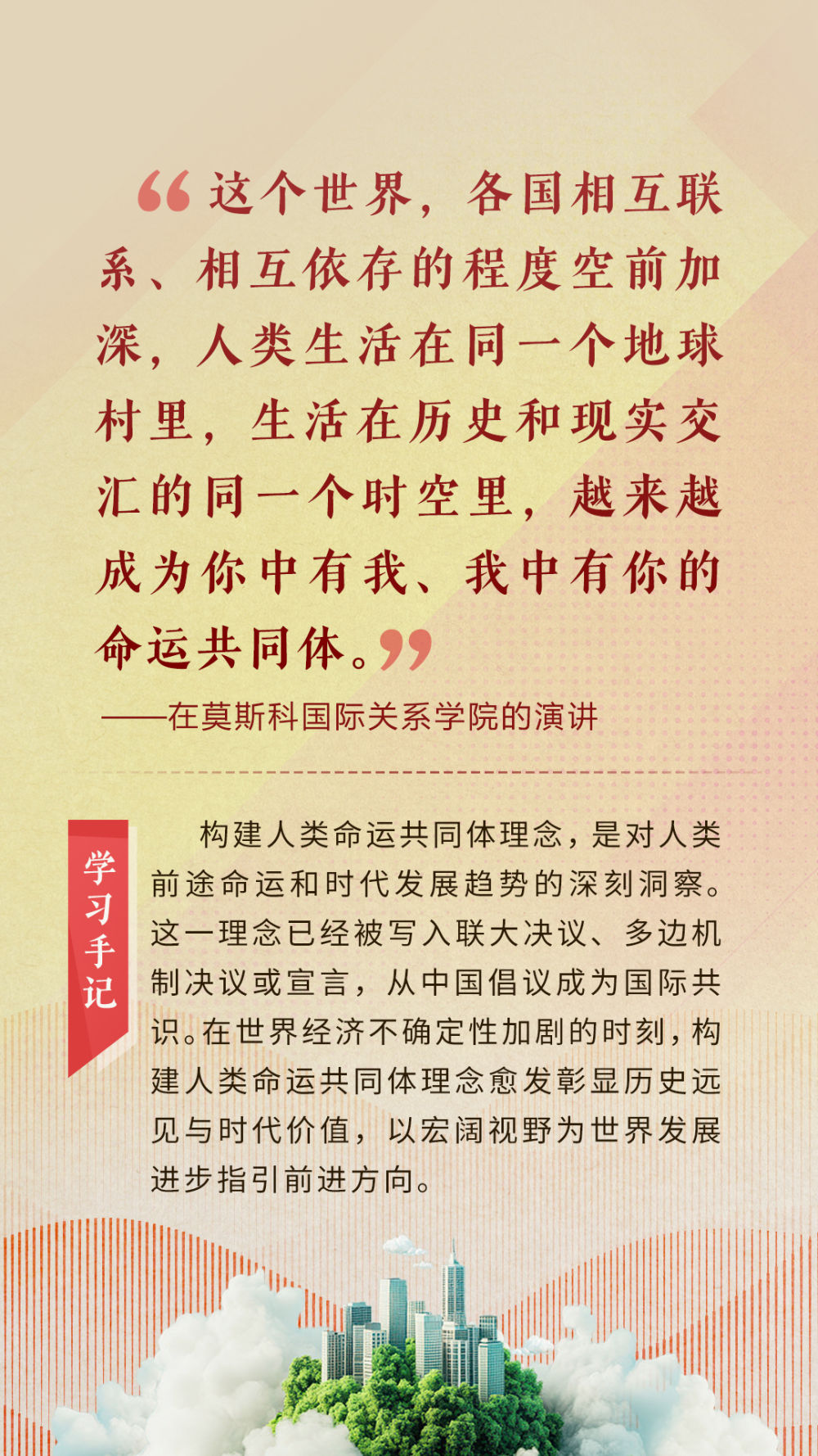 “天空足夠大,地球足夠大,世界也足夠大,容得下各國共同發(fā)展繁榮”“你中有我、我中有你的命運共同體”“與中國同行就是與機遇同行”……習(xí)近平總書記一次次在重要場合發(fā)表重要講話,指引我們站在歷史正確的一邊,站在人類進步的一邊,不畏浮云、登高望遠,不懼風(fēng)浪、勇毅前行。