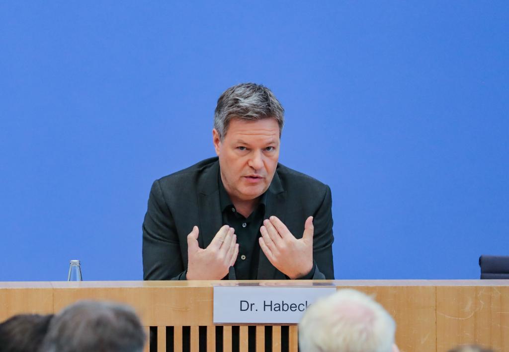 2月24日,在德國(guó)柏林,德國(guó)副總理兼經(jīng)濟(jì)部長(zhǎng)哈貝克出席新聞發(fā)布會(huì)。新華社記者張帆攝