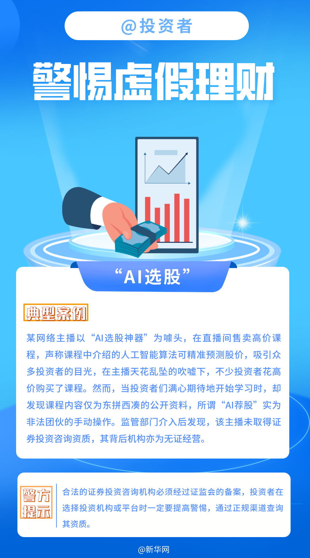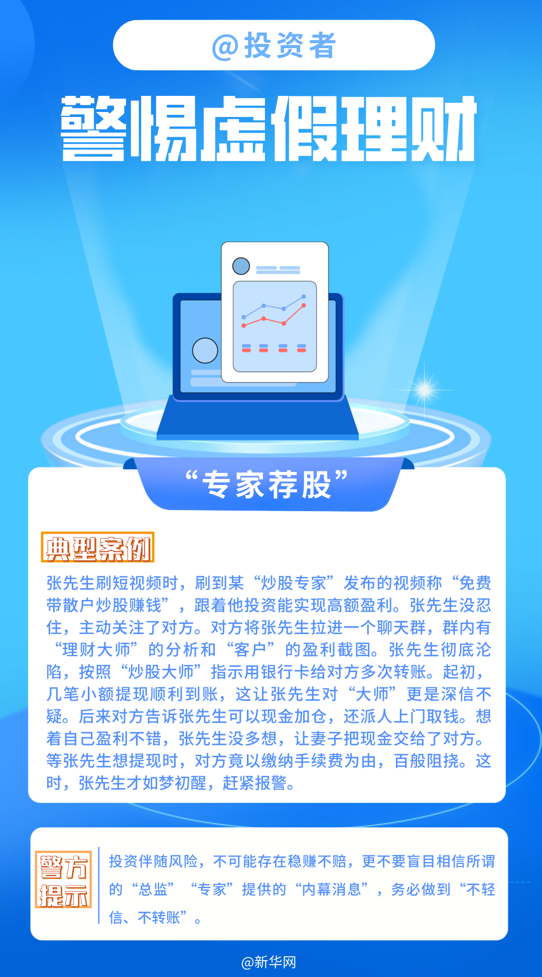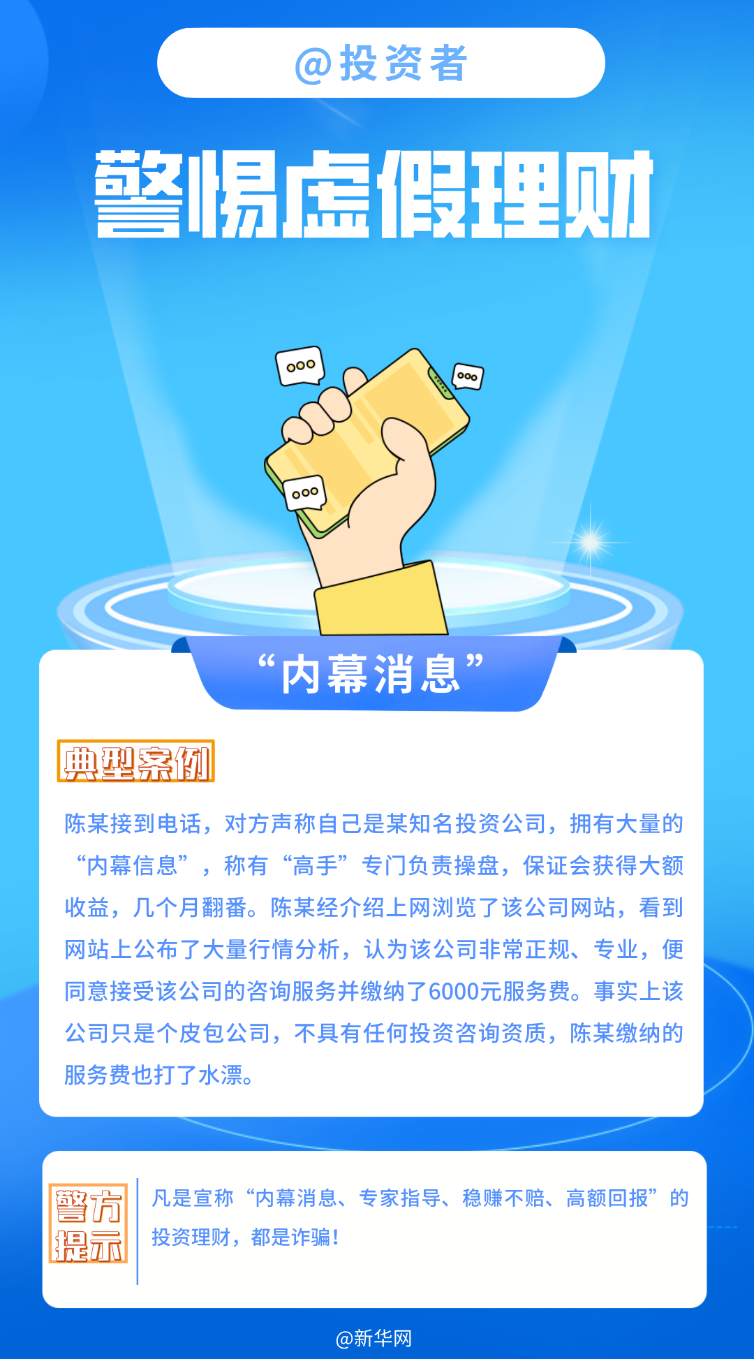 虛假網(wǎng)絡(luò)投資理財詐騙系2025十大高發(fā)電信網(wǎng)絡(luò)詐騙類型之一。“名師指導(dǎo)”“內(nèi)幕消息”“穩(wěn)賺不賠”......這些都是詐騙分子的套路,廣大投資者們務(wù)必要提高警惕、仔細甄別。