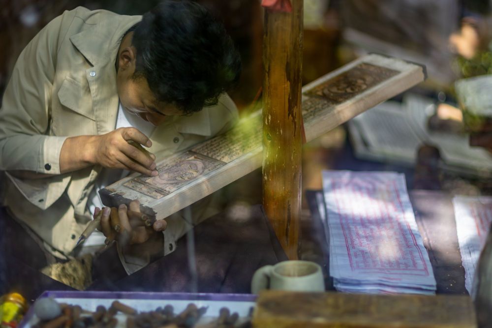 ↑ 8月6日,雕刻師在工作中。西藏雪巴康雕版印刷制作技藝入選西藏自治區(qū)級(jí)非物質(zhì)文化遺產(chǎn)代表性項(xiàng)目名錄。