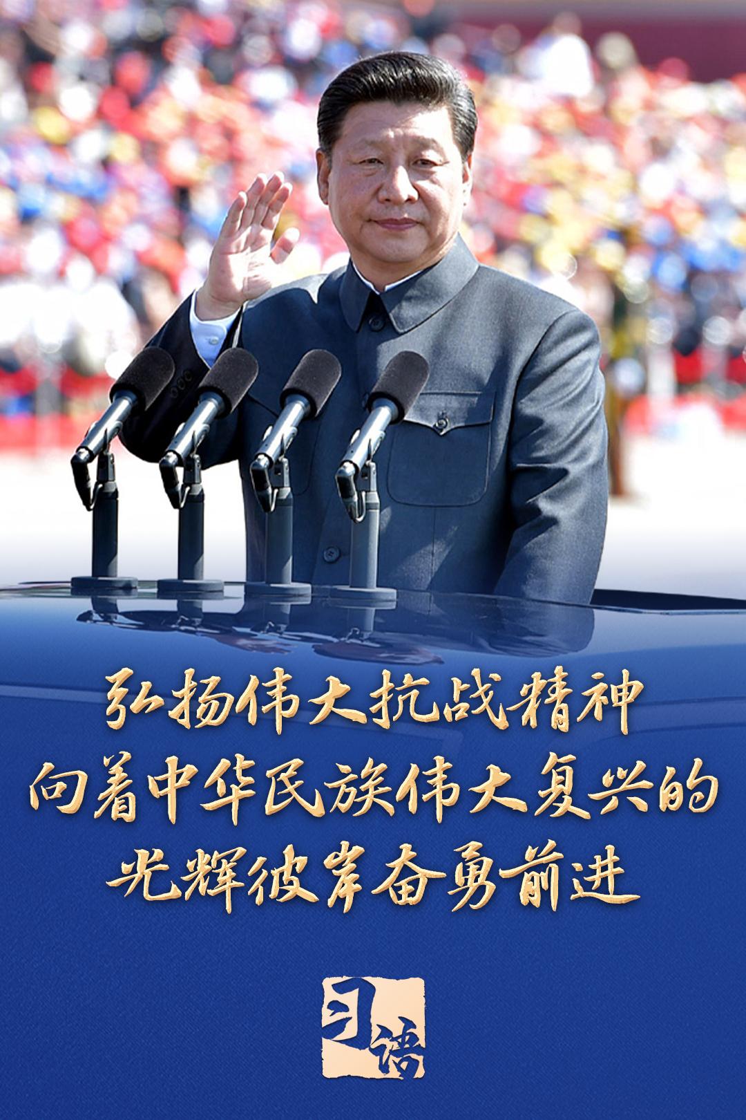 “新的歷史條件下,全黨全國各族人民要大力弘揚偉大抗戰(zhàn)精神,不斷增強團結(jié)一心的精神紐帶、自強不息的精神動力,繼續(xù)朝著中華民族偉大復(fù)興的中國夢奮勇前進,不斷以堅持和發(fā)展中國特色社會主義的新成就告慰我們的前輩和英烈!”