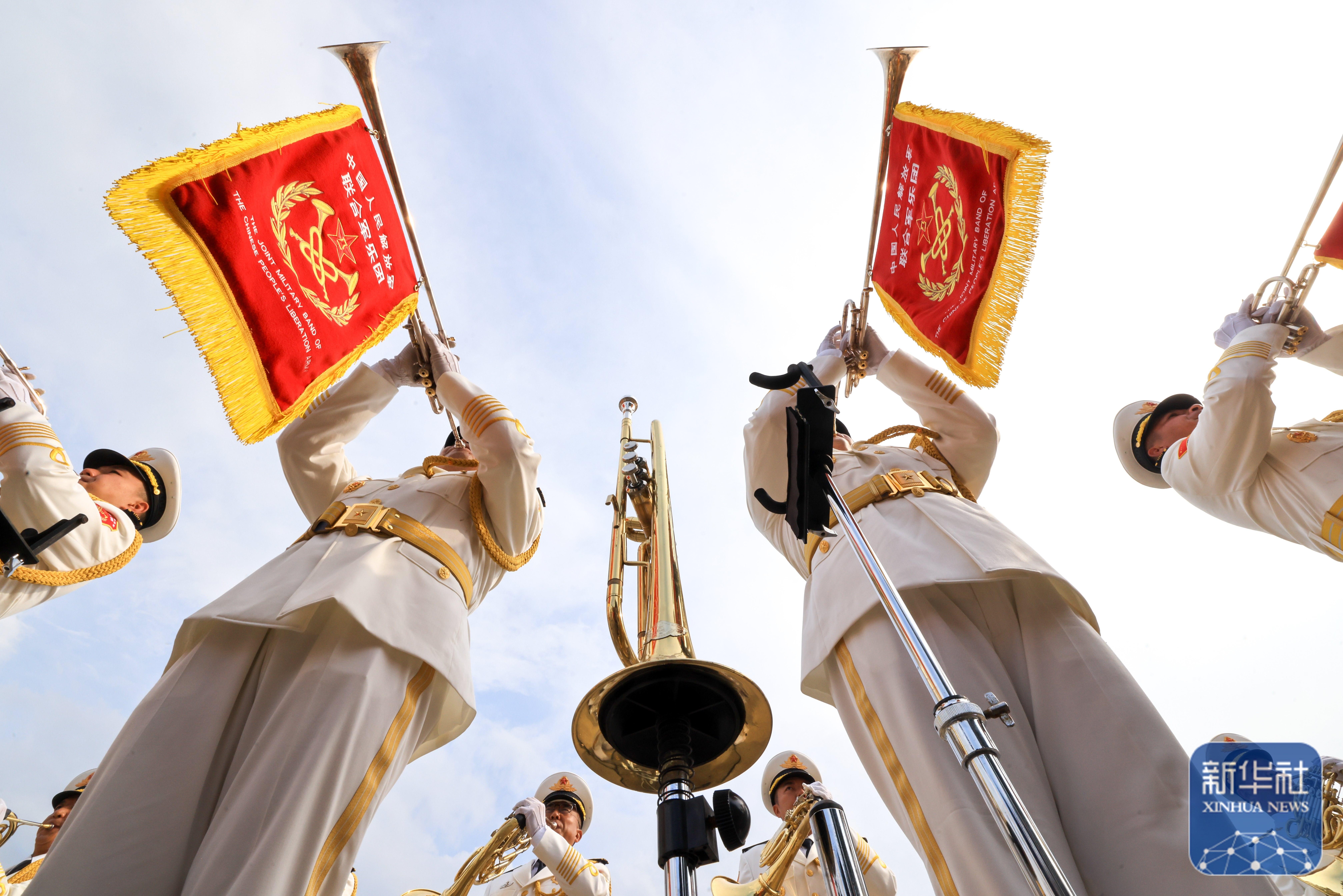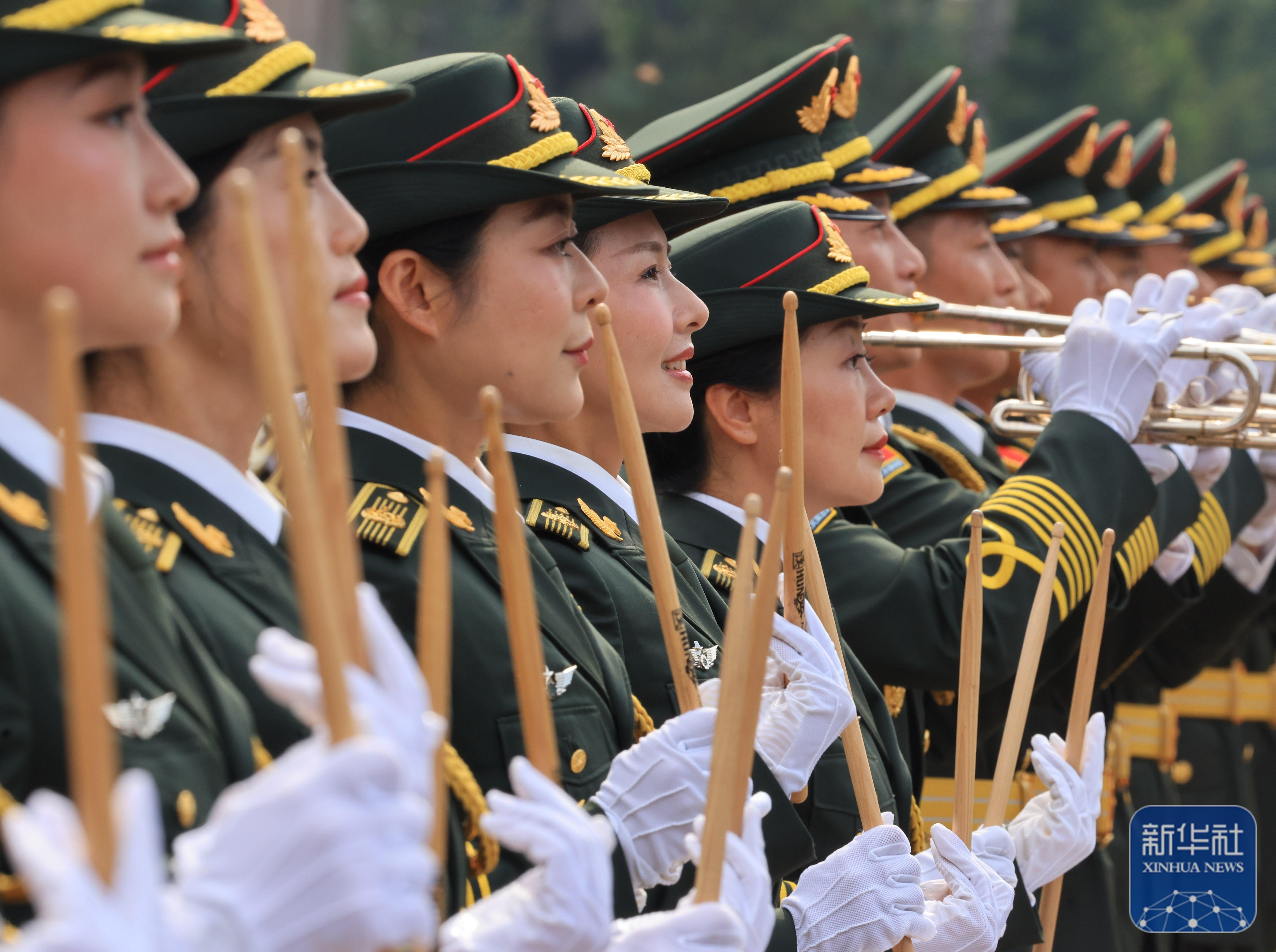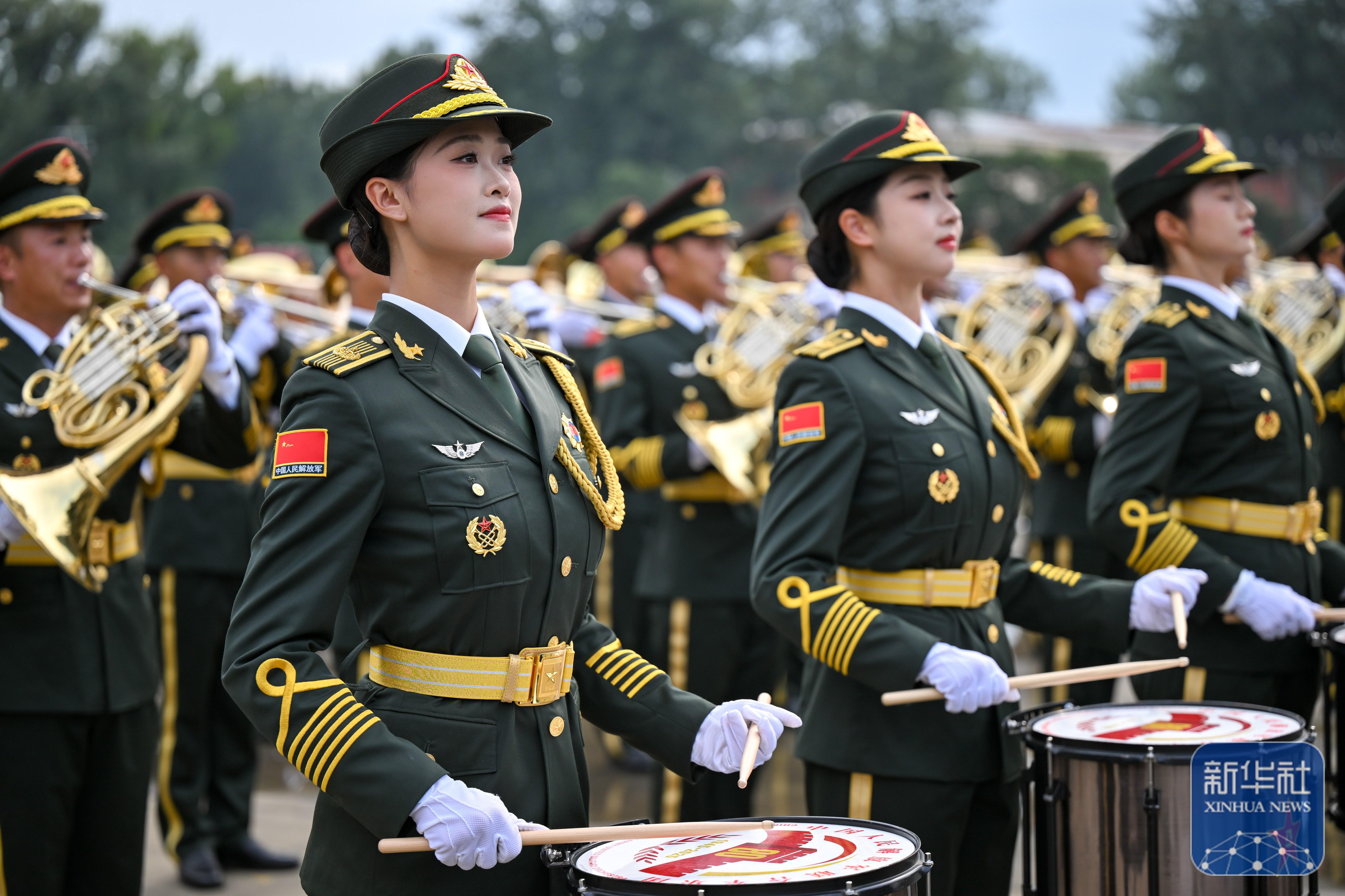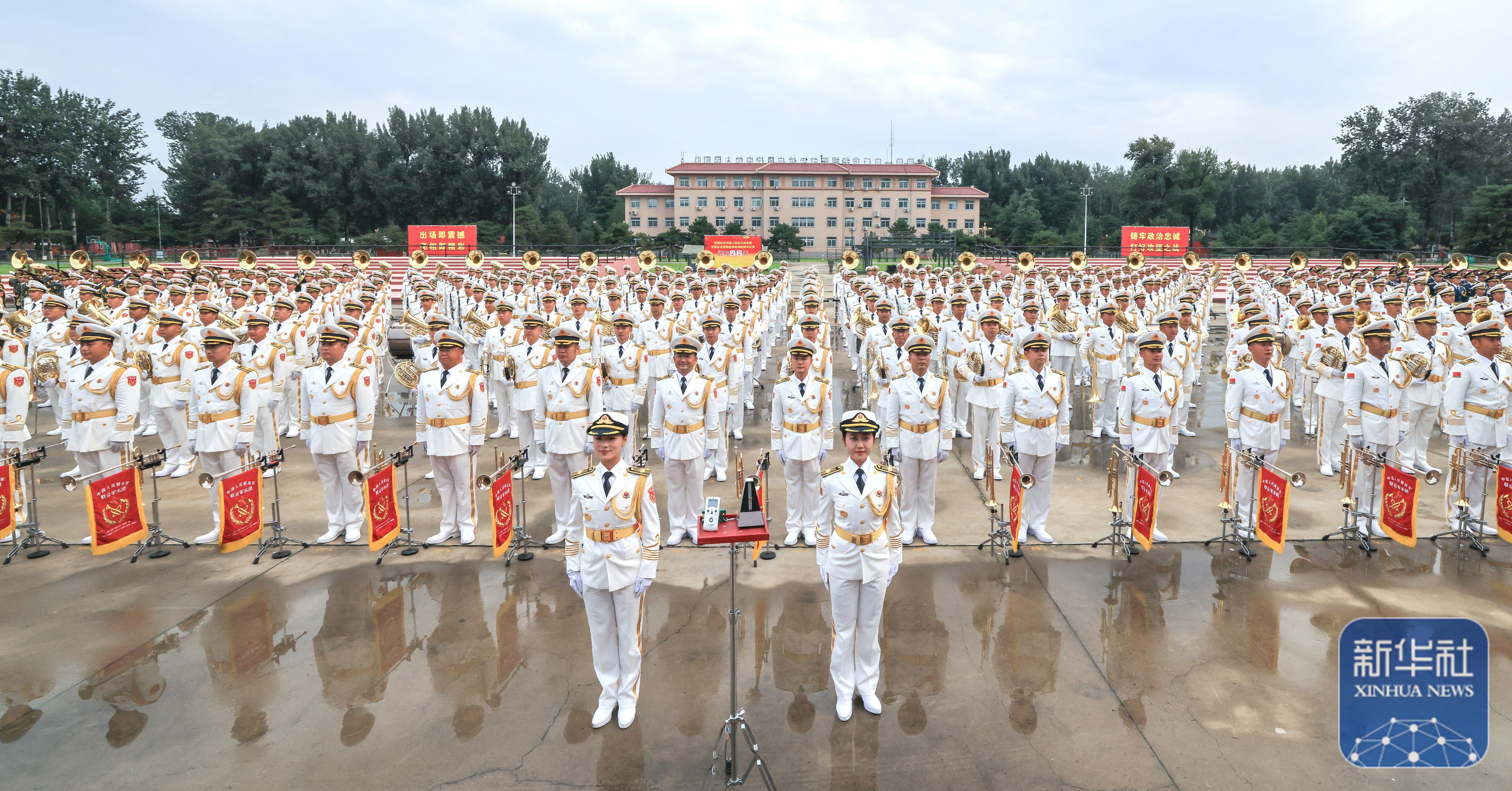 ↑ 中國(guó)人民解放軍聯(lián)合軍樂(lè)團(tuán)在進(jìn)行訓(xùn)練(8月12日攝)。新華社記者 張鋮 攝