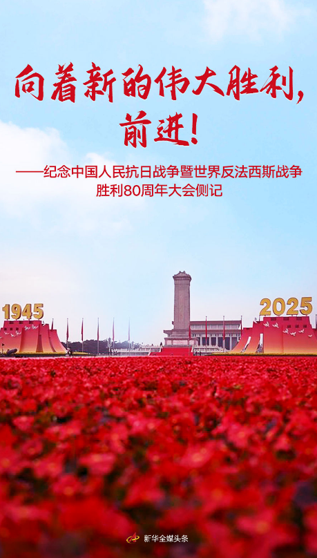 2025年9月3日,時間的指針標(biāo)注新的歷史刻度—— 中國人民抗日戰(zhàn)爭暨世界反法西斯戰(zhàn)爭勝利80周年紀(jì)念活動隆重舉行。這是全世界一切愛好和平的國家和人民的莊重典禮。 各界代表和群眾匯聚北京天安門廣場隆重集會,黨和國家舉行盛大閱兵儀式,共同銘記歷史、緬懷先烈、珍愛和平、開創(chuàng)未來。 1931—1945,中國人民經(jīng)過艱苦卓絕的浴血奮戰(zhàn),取得近代以來反抗外敵入侵的第一次完全勝利。 1945—2025,偉大抗戰(zhàn)精神激勵中國人民克服一切艱難險阻,中華民族迎來了從站起來、富起來到強(qiáng)起來的偉大飛躍,中國式現(xiàn)代化呈現(xiàn)出無比光明燦爛的前景。 歷史記憶永不褪色,時代潮流浩蕩向前。 習(xí)近平總書記莊嚴(yán)宣示:“中華民族偉大復(fù)興勢不可擋!人類和平與發(fā)展的崇高事業(yè)必將勝利!” (一) 初秋的北京,天高地闊。 修葺一新的天安門城樓大殿內(nèi),懸掛著一幅題為《眾志成城》的巨幅畫作:層林盡染、萬山紅遍間,長城如一條巨龍蜿蜒盤旋。 大殿外,天安門廣場兩側(cè)80面紅旗迎風(fēng)招展,巍峨矗立的人民英雄紀(jì)念碑前,14座烽燧托舉起“1945”“2025”年號。廣場觀禮臺以城墻紅、橄欖綠、豐饒金為三主色,形似三個巨大“人”字,組成“眾”字造型。 8時35分,中共中央總書記、國家主席、中央軍委主席習(xí)近平登上天安門城樓,同抗戰(zhàn)老戰(zhàn)士申秉宸、張坪、劉世鉞、傅英、羅競輝、宋其祥一一握手,向他們表示崇高敬意。 這次紀(jì)念大會,邀請了參加過抗戰(zhàn)的老戰(zhàn)士、老同志、老民兵、地方支前模范代表和抗戰(zhàn)烈士親屬代表到現(xiàn)場觀禮。 觀禮臺上,97歲的抗戰(zhàn)老戰(zhàn)士齊英胸前勛章閃耀:“12歲我加入了八路軍,1949年在開國大典現(xiàn)場見證了新中國的成立,今天再次感受祖國的強(qiáng)大。犧牲了的戰(zhàn)友們,血沒有白流?!?/p> “我的家在東北松花江上,那里有我的同胞”“敵人從哪里進(jìn)攻,我們就要他在哪里滅亡”“保衛(wèi)家鄉(xiāng),保衛(wèi)黃河,保衛(wèi)華北,保衛(wèi)全中國”“沒有共產(chǎn)黨,就沒有新中國”…… 千余人組成的聯(lián)合軍樂團(tuán)奏響熟悉的旋律,合唱團(tuán)嘹亮的歌聲如同雄渾史詩,講述那段壯懷激烈、前赴后繼的烽火歲月。紀(jì)念大會現(xiàn)場的人群情不自禁地合唱,激發(fā)起海內(nèi)外中華兒女的情感共鳴。 穿越革命和建設(shè)的洪流,激蕩改革與發(fā)展的風(fēng)云,中國共產(chǎn)黨領(lǐng)導(dǎo)中國人民一路乘風(fēng)破浪,中國道路更加寬廣,中國力量不可阻擋。 “波瀾壯闊的抗日戰(zhàn)爭,孕育偉大的抗戰(zhàn)精神。這是中國人民彌足珍貴的精神財(cái)富,將永遠(yuǎn)激勵我們克服艱難險阻、一路向前。”中國探月工程總設(shè)計(jì)師、中國工程院院士吳偉仁說。 此時此刻,東長安街上,鐵甲生輝、重器列陣,人民軍隊(duì)以嚴(yán)整的軍容、雄壯的氣勢、昂揚(yáng)的精神,等待黨和人民的檢閱。 大江南北、長城內(nèi)外,從白山黑水到南海之濱,從江南水鄉(xiāng)到大漠戈壁,現(xiàn)場畫面和聲音隨著直播信號傳遍中國大地。 8時55分,習(xí)近平總書記等黨和國家領(lǐng)導(dǎo)人及應(yīng)邀觀禮的國際政要來到天安門城樓主席臺,全場爆發(fā)出熱烈掌聲。 (二) 9時整,紀(jì)念中國人民抗日戰(zhàn)爭暨世界反法西斯戰(zhàn)爭勝利80周年大會開始。 80響禮炮震徹云霄,國旗護(hù)衛(wèi)隊(duì)以堅(jiān)定有力的步伐,從人民英雄紀(jì)念碑行進(jìn)至升旗區(qū)。 80年,從偉大勝利走向偉大復(fù)興。這是民族獨(dú)立、人民解放的路,是國家富強(qiáng)、人民幸福的路,是和平發(fā)展、命運(yùn)與共的路。 “起來!不愿做奴隸的人們!把我們的血肉,筑成我們新的長城……” 全場齊聲高唱《義勇軍進(jìn)行曲》,五星紅旗冉冉升起。 9時08分,習(xí)近平總書記在天安門城樓發(fā)表重要講話—— “我代表中共中央、全國人大、國務(wù)院、全國政協(xié)、中央軍委,向全國參加過抗日戰(zhàn)爭的老戰(zhàn)士、老同志、愛國人士和抗日將領(lǐng),向?yàn)橹袊嗣窨谷諔?zhàn)爭勝利作出重大貢獻(xiàn)的海內(nèi)外中華兒女,致以崇高敬意!” 這是黨和國家對歷史的銘記、對英雄的禮贊。 從平型關(guān)大捷的痛擊日寇,到百團(tuán)大戰(zhàn)的振奮人心;從淞滬會戰(zhàn)的“血肉磨坊”,到臺兒莊戰(zhàn)役的揚(yáng)眉吐氣,中華大地英雄輩出,支撐起一個民族的不屈抗?fàn)帯?/p> 觀禮臺上,佟麟閣將軍之孫佟曉冬認(rèn)真聆聽,思緒萬千:“那些刻在歷史豐碑上的名字,就是中華民族的永恒燈塔?!?/p> 一部同仇敵愾、浴血山河的中國人民抗戰(zhàn)史,亦是砥柱中流、力挽狂瀾的偉大實(shí)踐史。 在國家危亡的歷史關(guān)頭,中國共產(chǎn)黨以民族大義為重,以宏大氣度和強(qiáng)烈擔(dān)當(dāng),維護(hù)團(tuán)結(jié)抗戰(zhàn)大局,點(diǎn)燃了救亡圖存的希望。 正如習(xí)近平總書記指出,在中國共產(chǎn)黨倡導(dǎo)建立的抗日民族統(tǒng)一戰(zhàn)線旗幟下,中國人民以錚錚鐵骨戰(zhàn)強(qiáng)敵、以血肉之軀筑長城。 千里之外,觀看電視直播的延安革命紀(jì)念館館長劉妮久久不能平靜:“歷史是最好的教科書。中國共產(chǎn)黨挺膺擔(dān)當(dāng),領(lǐng)導(dǎo)和號