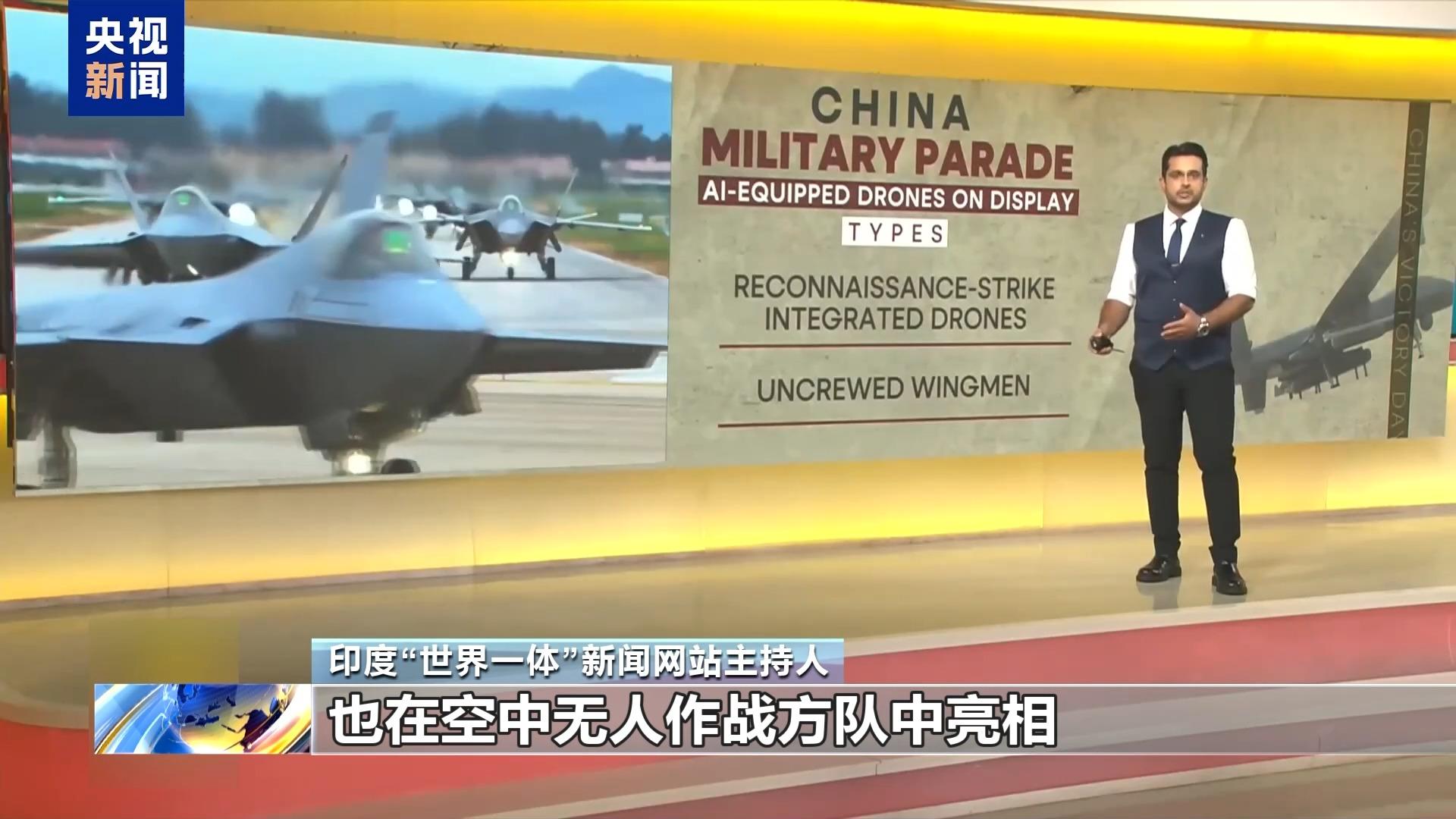 印度"世界一體"新聞網(wǎng)站主持人:新型人工智能技術(shù)無人機,也在空中無人作戰(zhàn)方隊中亮相,包括察打一體無人機,無人僚機,艦載無人直升機等裝備。