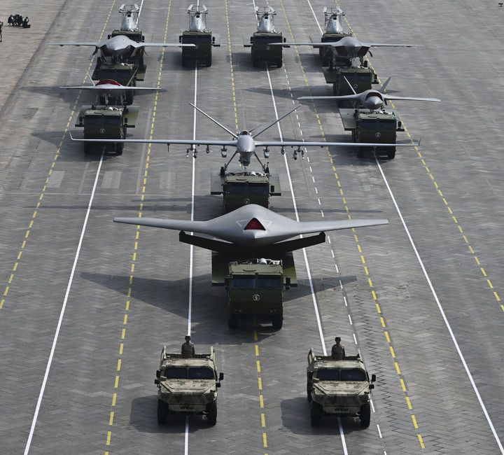 ↑9月3日,紀(jì)念中國(guó)人民抗日戰(zhàn)爭(zhēng)暨世界反法西斯戰(zhàn)爭(zhēng)勝利80周年大會(huì)在北京隆重舉行。這是空中無(wú)人作戰(zhàn)方隊(duì)接受檢閱。新華社記者 張鋮 攝
