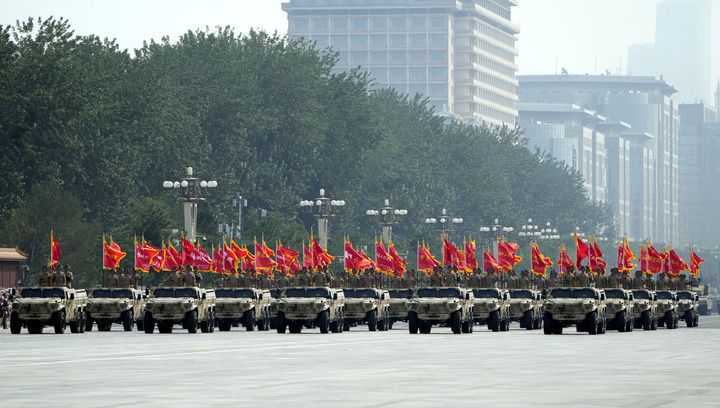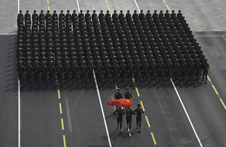 ↑9月3日,紀(jì)念中國(guó)人民抗日戰(zhàn)爭(zhēng)暨世界反法西斯戰(zhàn)爭(zhēng)勝利80周年大會(huì)在北京隆重舉行。這是信息支援部隊(duì)方隊(duì)通過(guò)天安門廣場(chǎng)。新華社記者 陳益宸 攝