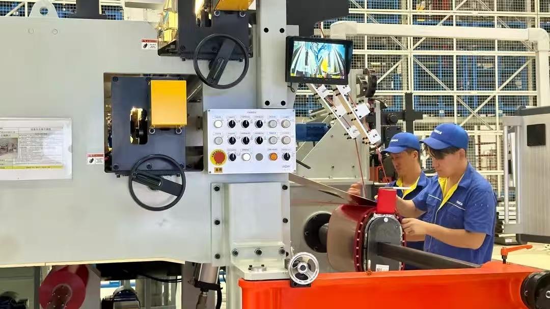 工作人員在特變電工智能電氣裝備科技產(chǎn)業(yè)園智能電氣數(shù)字化車間進(jìn)行線圈繞制作業(yè)。經(jīng)濟(jì)日報(bào)記者張倩攝