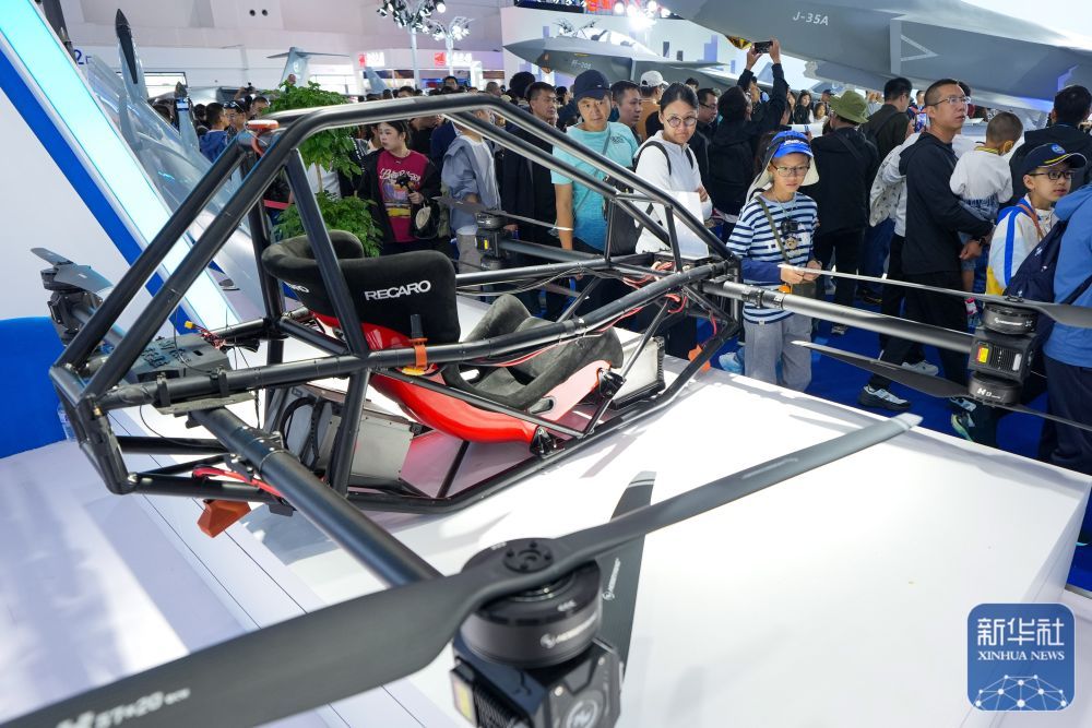 ↑ 9月20日,參觀者在現(xiàn)場(chǎng)參觀載人多旋翼飛行器。