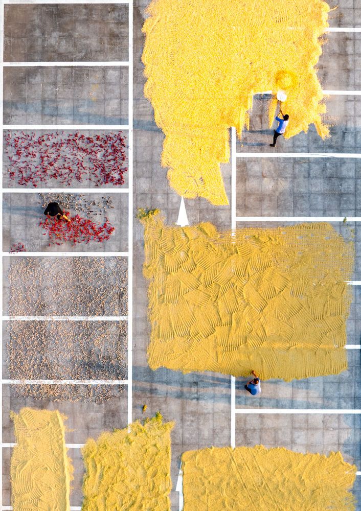 金秋時節(jié),多地農民趁著晴好天氣,將收獲的農作物在房前屋后晾曬,五彩繽紛的農作物與鄉(xiāng)村景致交相輝映,勾勒出一幅幅美麗的豐收畫卷。