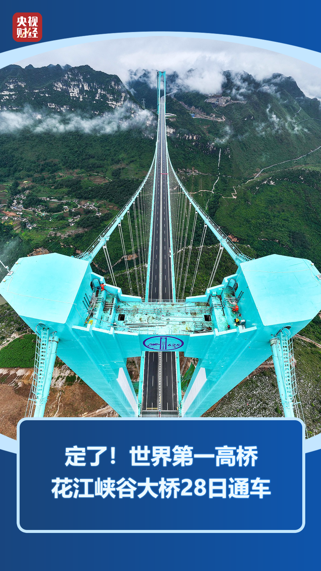 記者獲悉,世界第一高橋——花江峽谷大橋將于9月28日正式建成通車?;ń瓖{谷大橋是貴州六枝至安龍高速公路的關鍵控制性工程,全長2890米,主橋跨徑1420米,橋面到水面高度625米,主橋跨徑居山區(qū)橋梁跨徑世界第一、橋梁高度居世界第一,被稱為"橫豎"都是世界第一。