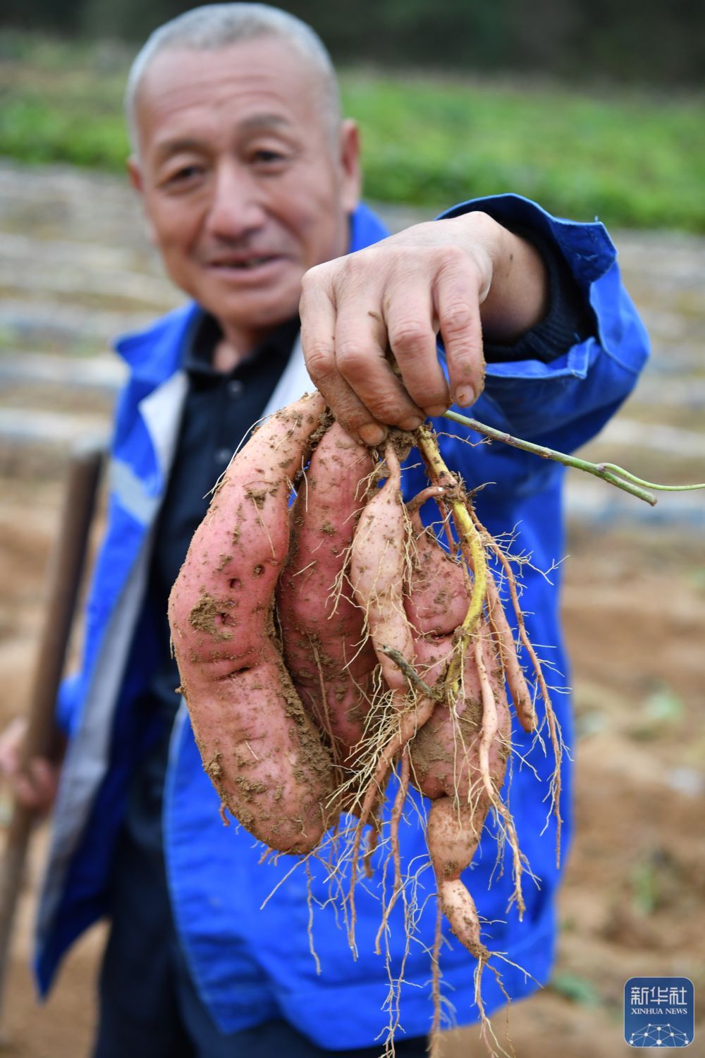 ↑ 10月16日,延安市寶塔區(qū)甘谷驛鎮(zhèn)羅家灣村村民羅維陽(yáng)展示收獲的紅薯。新華社記者 邵瑞 攝