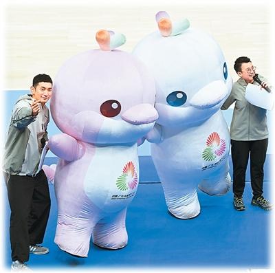 第十五屆全國運動會吉祥物與觀眾互動?! ⌒氯A社記者 胡虎虎攝