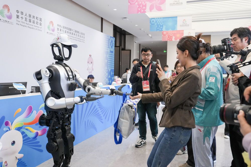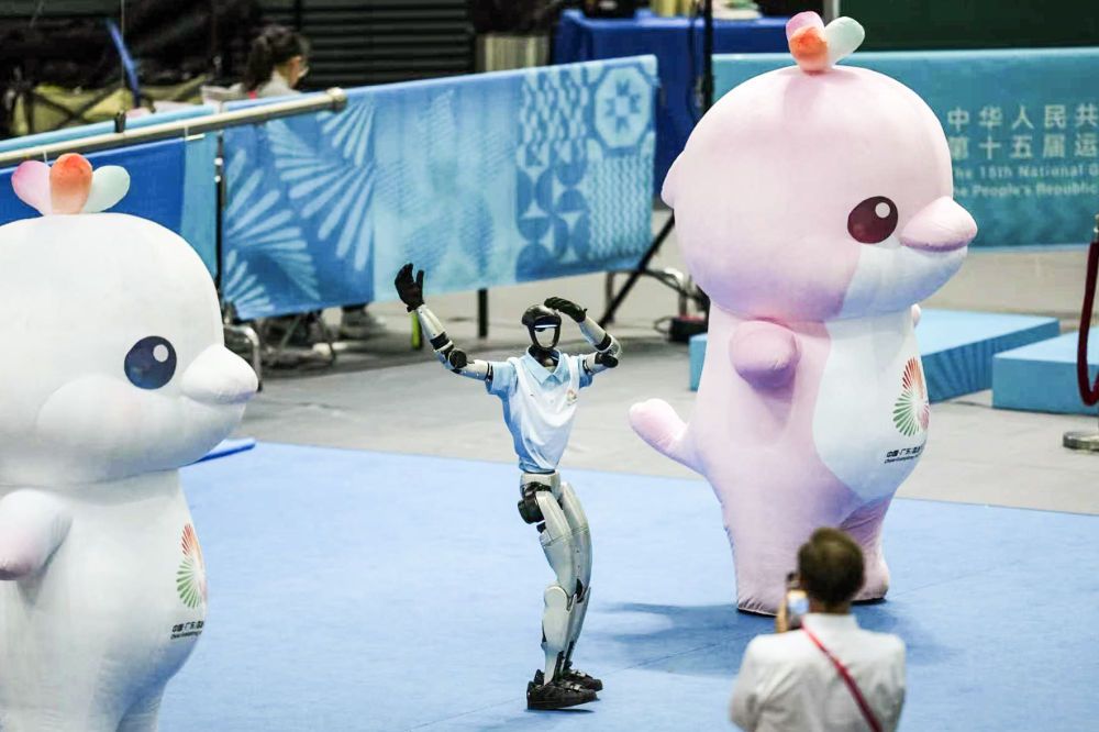 11月9日,機(jī)器人在第十五屆全國(guó)運(yùn)動(dòng)會(huì)開(kāi)幕式現(xiàn)場(chǎng)表演。