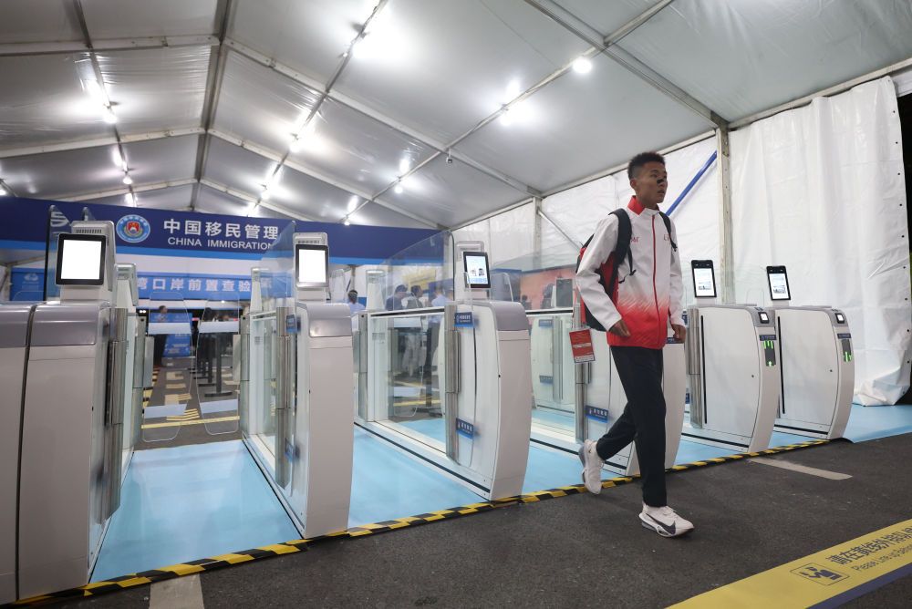 11月15日,全運(yùn)會(huì)歷史上首個(gè)跨境馬拉松賽事開(kāi)賽前,參賽選手在深圳灣口岸前置查驗(yàn)區(qū)完成查驗(yàn)手續(xù)。本次賽事通過(guò)智慧管理體系,實(shí)現(xiàn)了無(wú)感通關(guān)。