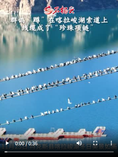 群鴿“蹲”在喀拉峻湖索道上 線(xiàn)纜成了“珍珠項(xiàng)鏈”