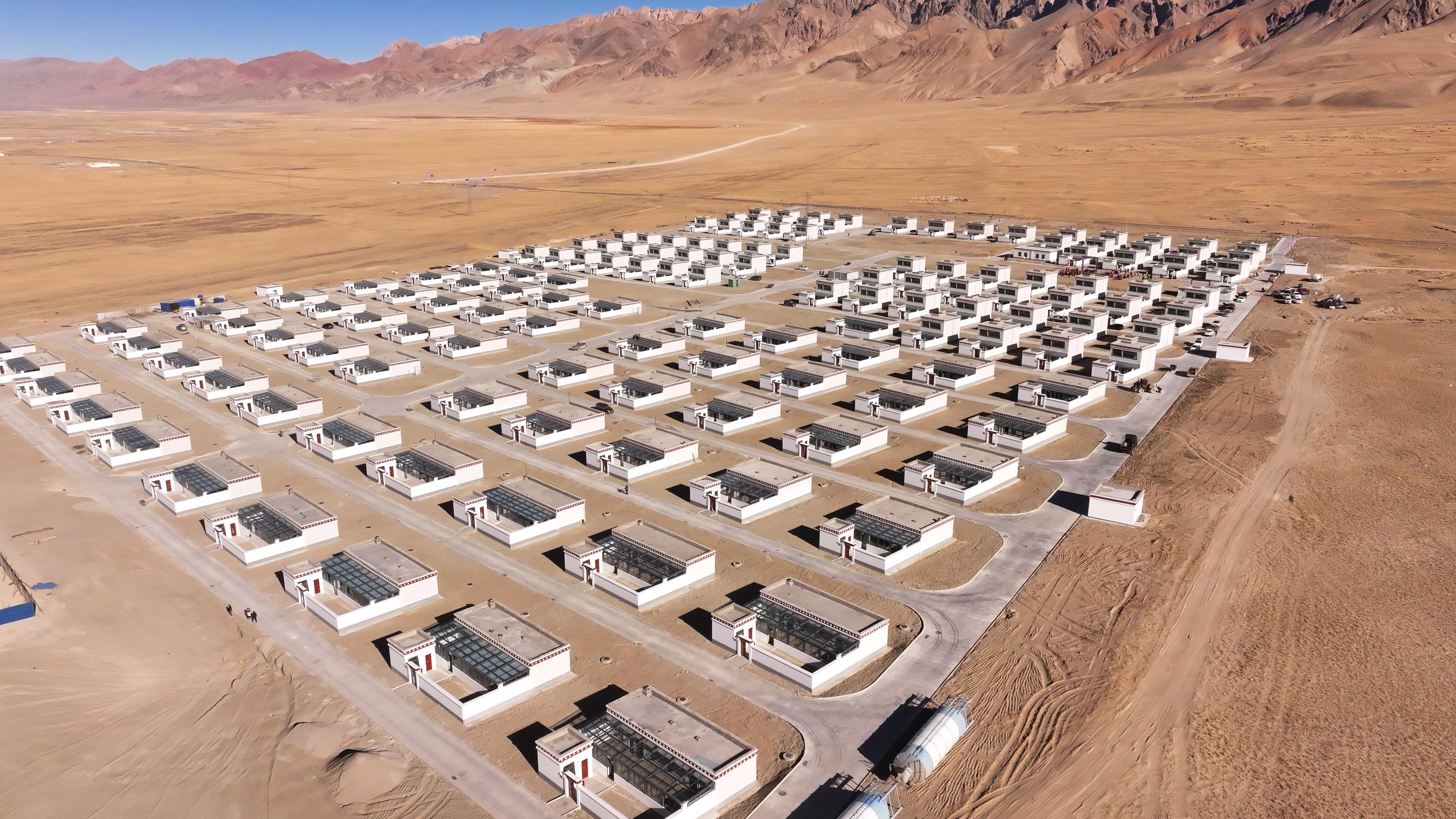 圖為在航拍視角下,改則縣麻米鄉(xiāng)茶措村整齊排列的宜居宜業(yè)和美新村新居。改則縣融媒體中心攝