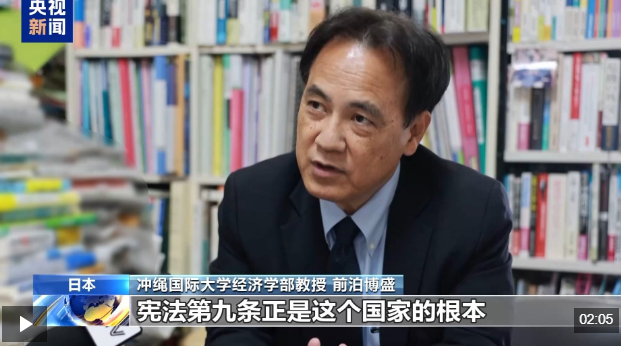 沖繩國際大學(xué)經(jīng)濟學(xué)部教授 前泊博盛:這本就不是一個首相應(yīng)該發(fā)表的言論內(nèi)容,這一點在日本國內(nèi)也已經(jīng)遭到了批評。日本本應(yīng)是“非戰(zhàn)國家”,是一個在憲法中明確寫下“不戰(zhàn)”的國家,憲法第九條正是這個國家的根本,其中清楚寫著“日本不擁有軍隊”,包括陸??杖?,同時規(guī)定,不使用武力作為解決國際爭端的手段。正因為如此,日本才能成為中國可以信任的國家,如果現(xiàn)在要向壞的方向修改這一條,那么就可以理解為,日本正朝著危險的方向前進。