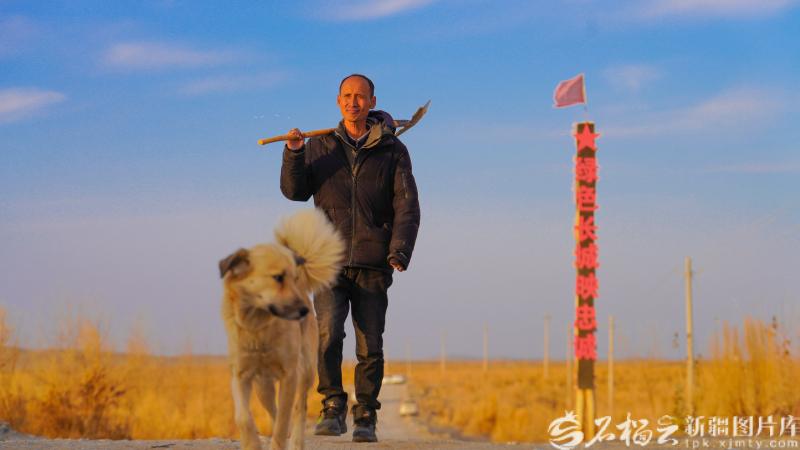 在塔克拉瑪干沙漠腹地的巴音郭楞蒙古自治州且末縣河?xùn)|治沙基地,且末縣老兵治沙隊(duì)隊(duì)長(zhǎng)田野采挖肉蓯蓉歸來(lái)(資料圖)。