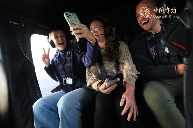 南非博主莉齊和國(guó)際友人乘坐低空直升機(jī),從深圳市中心6分鐘抵達(dá)梧桐閣頂峰。