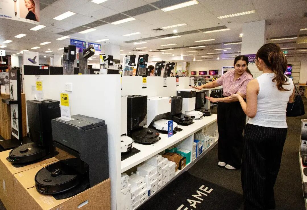 在澳大利亞悉尼市中心一家電器商場內(nèi),店員向顧客介紹石頭科技的掃地機(jī)器人。新華社記者 馬平攝