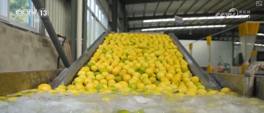在四川簡(jiǎn)陽(yáng)市雷家鎮(zhèn)的一個(gè)檸檬園里,金黃飽滿的檸檬采摘后,馬上被送到果園附近的檸檬出口基地,經(jīng)自動(dòng)化的清洗、分揀、包裝,不出兩小時(shí)檸檬就處理完畢。