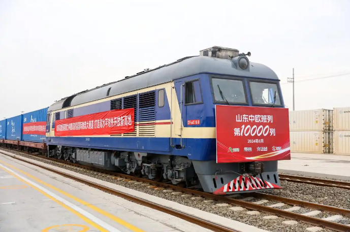 山東中歐班列從濟(jì)南董家鎮(zhèn)站駛出。圖片來源:新華社