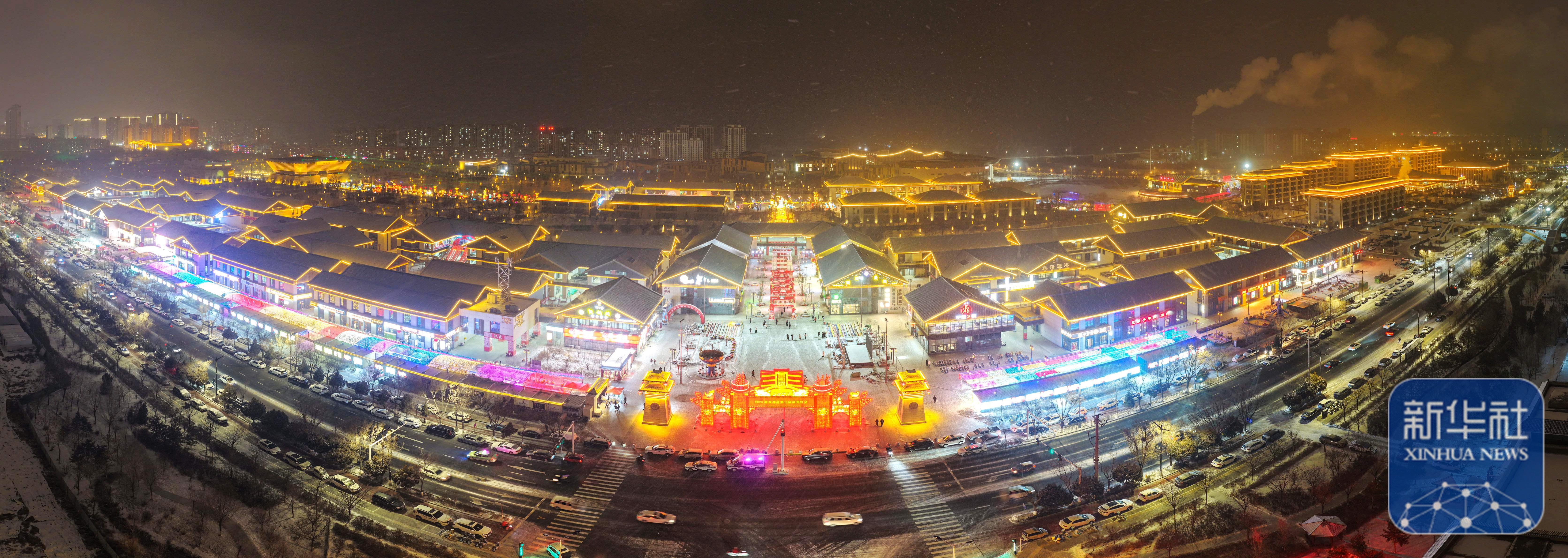 ↑ 1月1日在甘肅省武威市拍攝的正在舉行涼州燈會的河西都會景區(qū)(無人機照片)。新華社發(fā)(姜愛平 攝)