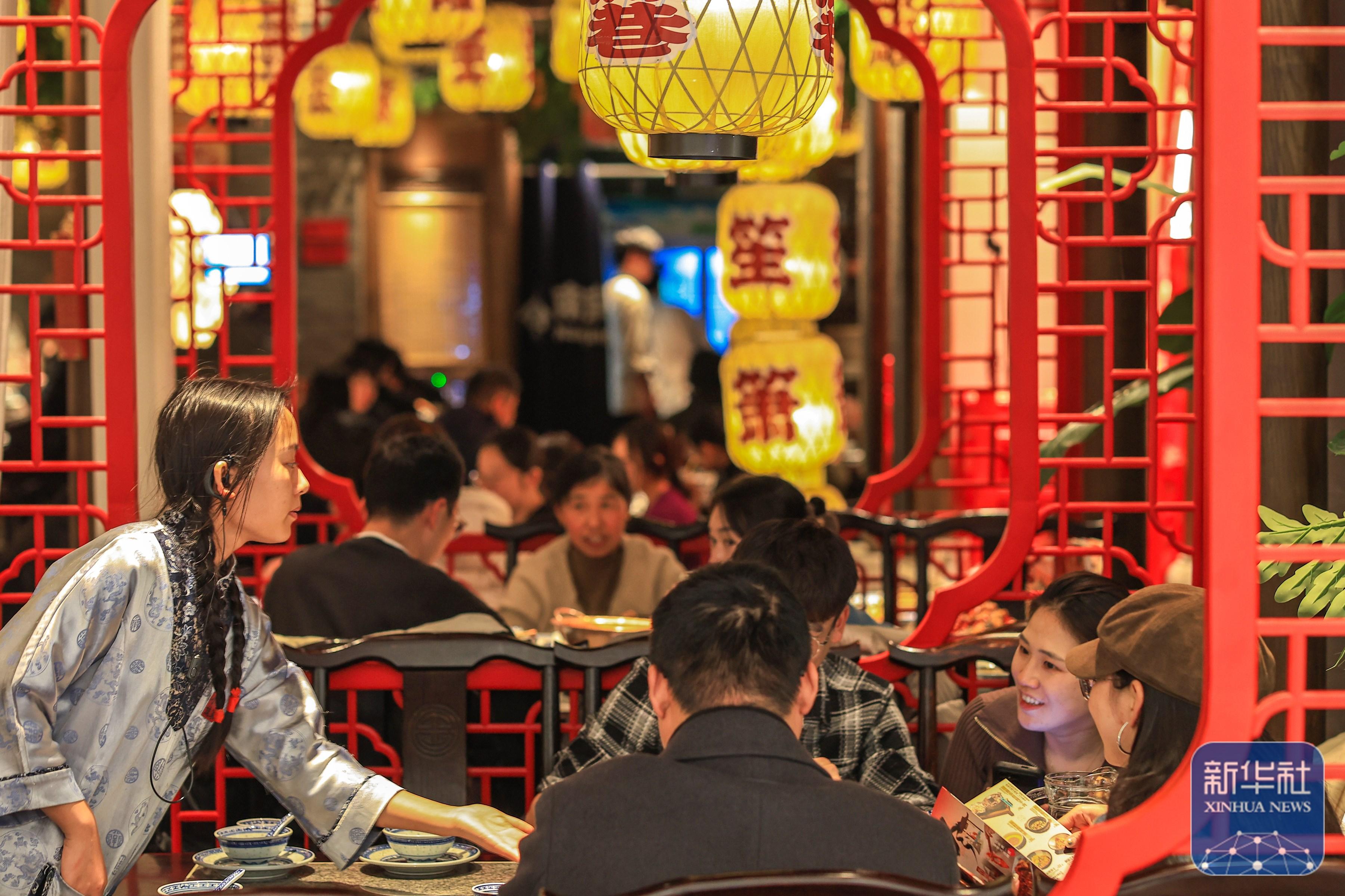 ↑ 1月1日晚,人們在江蘇省南京市一家餐館里用餐。新華社發(fā)(辛一 攝)