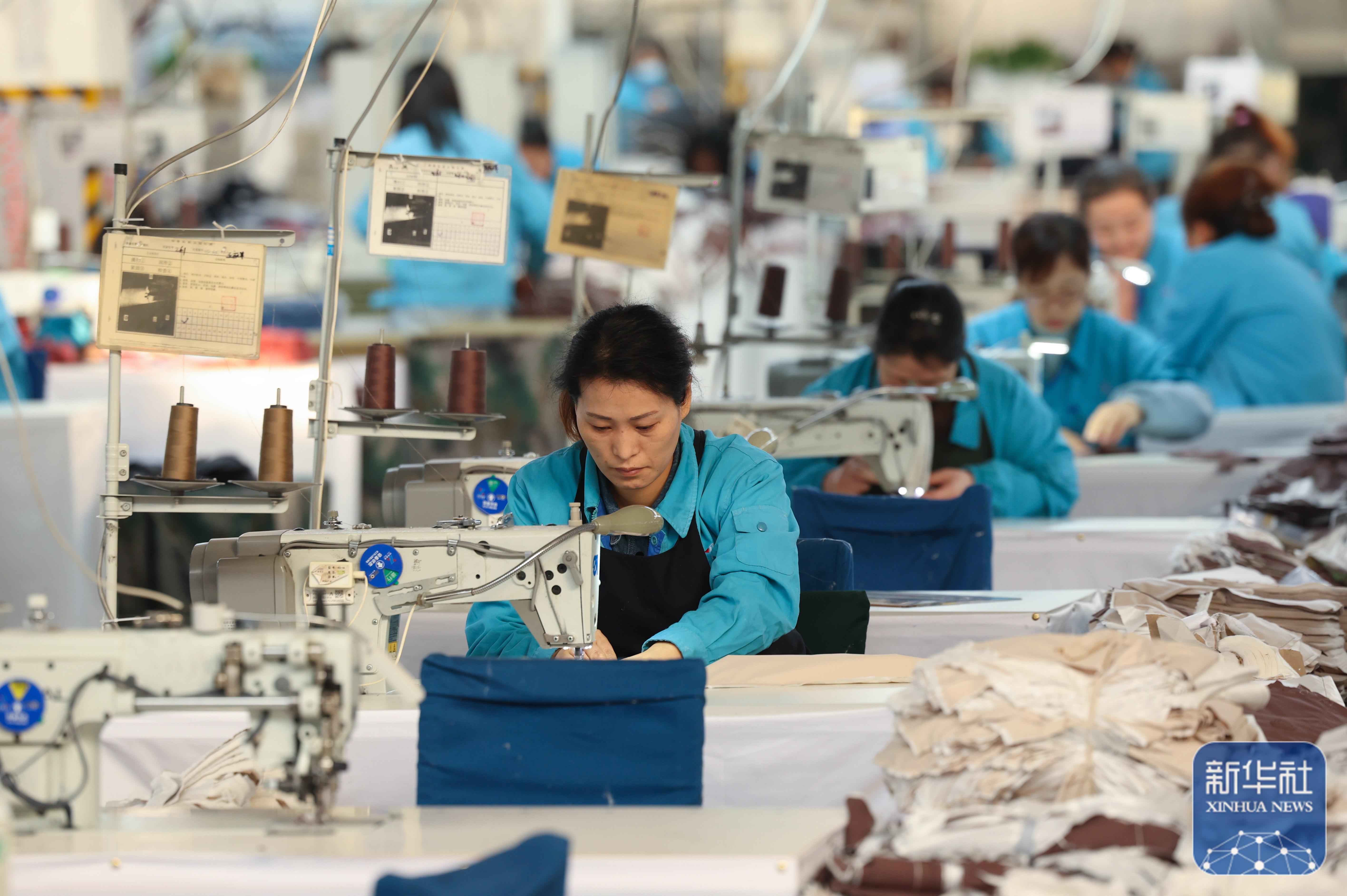 ↑ 1月2日,在位于河北省石家莊市井陘縣的一家服裝企業(yè),工人在車間趕制訂單。新華社發(fā)(梁子棟攝)