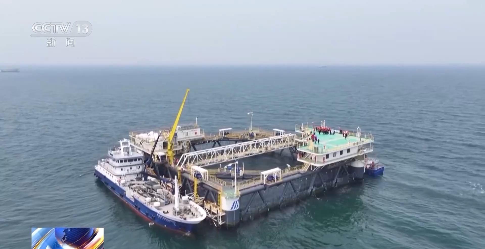 在黃渤海交界處的這片國家級海洋牧場,目前分布著8個(gè)像這樣的深遠(yuǎn)海智能化網(wǎng)箱平臺。隨著海水虹鱒魚等深遠(yuǎn)海養(yǎng)殖新品種選育成功和陸海接力養(yǎng)殖技術(shù)模式的突破,今年1月底之前,這些網(wǎng)箱將陸續(xù)迎來100萬尾魚苗,首次開展大規(guī)模深遠(yuǎn)海養(yǎng)殖。