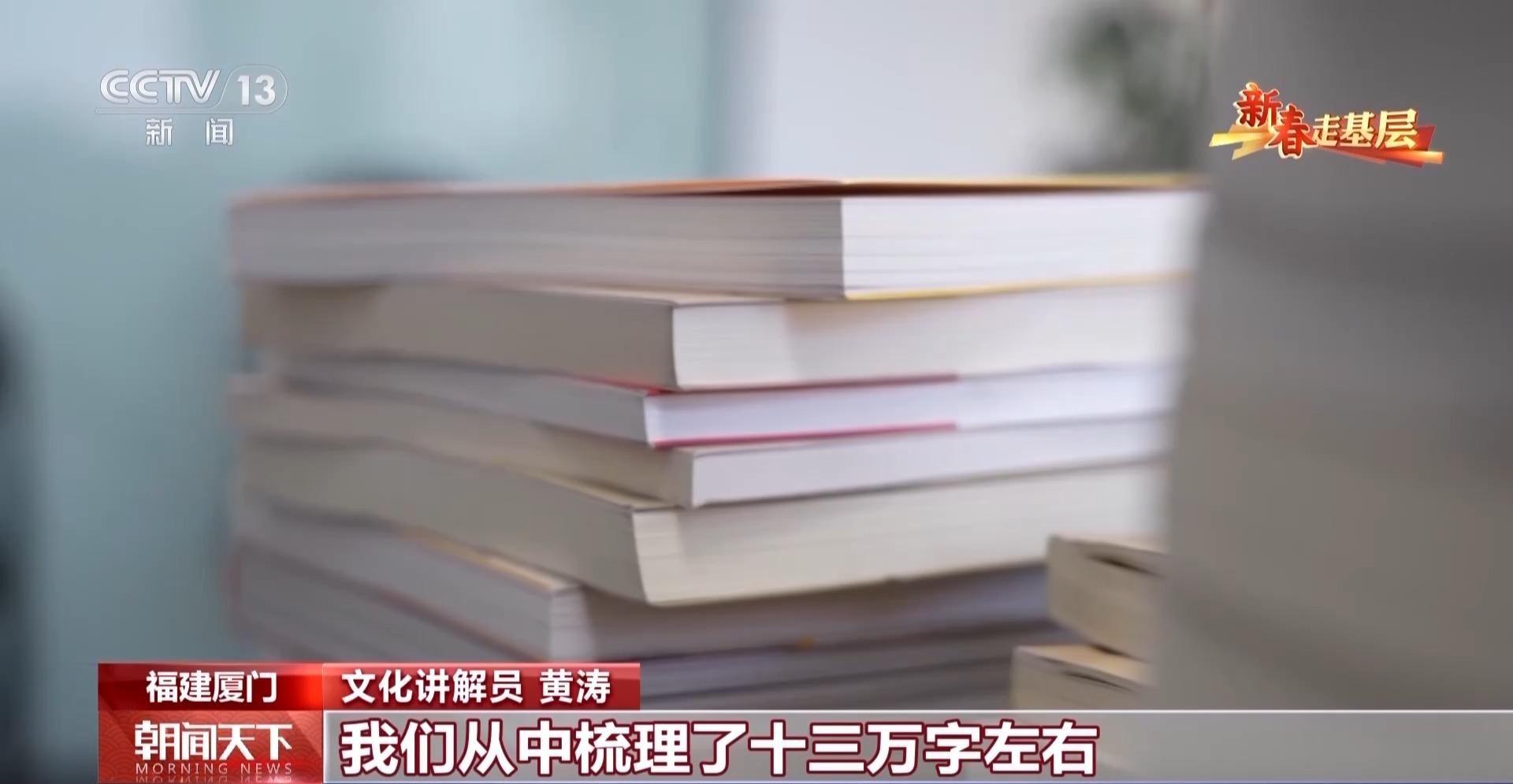 文化講解員 黃濤:我們?cè)瓉?lái)研究閩南歷史的時(shí)候所用的資料,大概有兩百多萬(wàn)字,我們從中梳理了大概十三萬(wàn)字,又提煉了講解稿,中文大概一萬(wàn)八千字,翻譯成英文就四萬(wàn)詞。