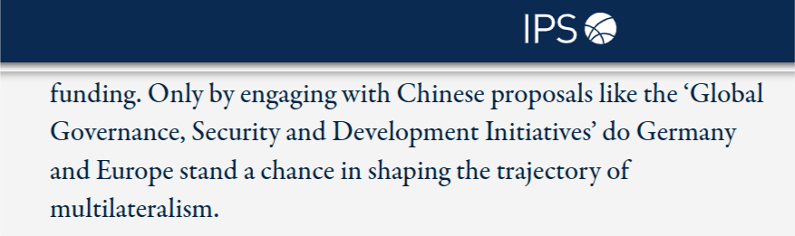 文章還特別提到,在國際組織和多邊主義方面,中國更像是合作伙伴。當(dāng)美國破壞國際法、破壞多邊體系時(shí),中國與歐洲國家攜手努力,讓世貿(mào)組織得以維持運(yùn)轉(zhuǎn),并成為聯(lián)合國的重要捐助方。文章指出,只有通過參與中國提出的“全球治理倡議、全球安全倡議與全球發(fā)展倡議”等提案,德國和歐洲才有機(jī)會塑造多邊主義的發(fā)展軌跡。