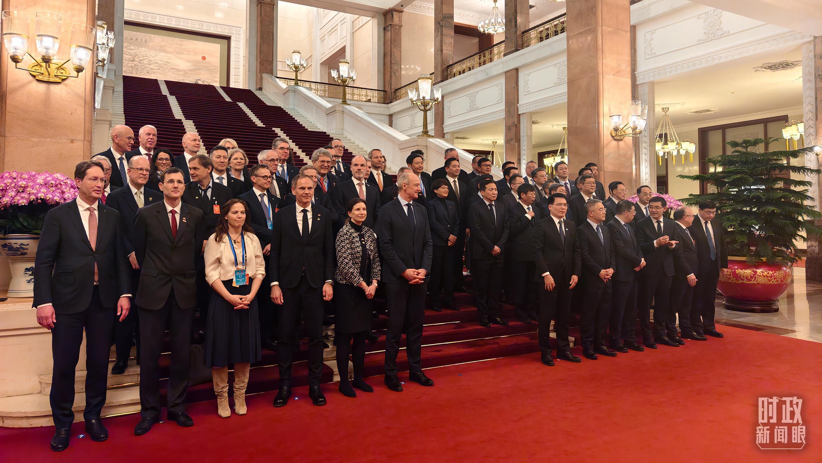 △2月25日下午,出席中德經(jīng)濟顧問委員會座談會的中德企業(yè)代表在等待合影。(總臺央視記者胡瑋拍攝)