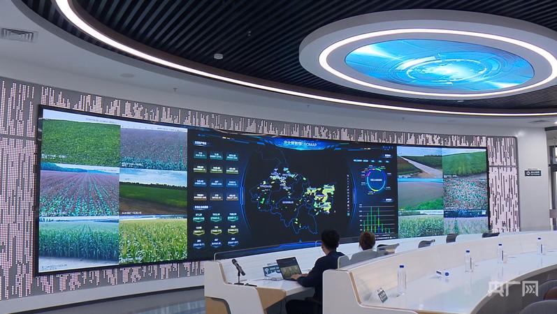 在北大荒信息公司的智慧農(nóng)業(yè)大數(shù)據(jù)中心,數(shù)據(jù)庫集合了北大荒4800多萬畝耕地80年來的種植數(shù)據(jù),工作人員通過操作智慧大屏展示了黑土地智慧農(nóng)業(yè)“未來”的模樣。