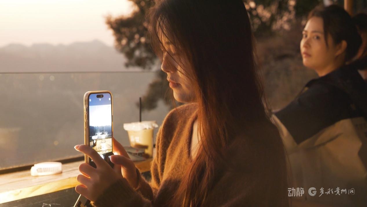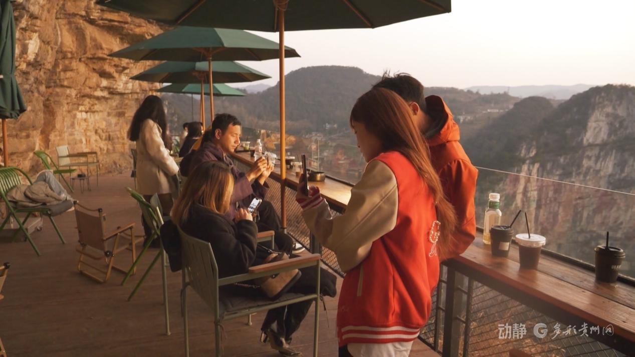 站在懸崖咖啡廳,腳下是150米垂直落差的喀斯特峽谷,建筑與青山融為一體,一杯熱咖啡,滿眼好風(fēng)光。即便氣溫偏低,這里依舊人氣滿滿。